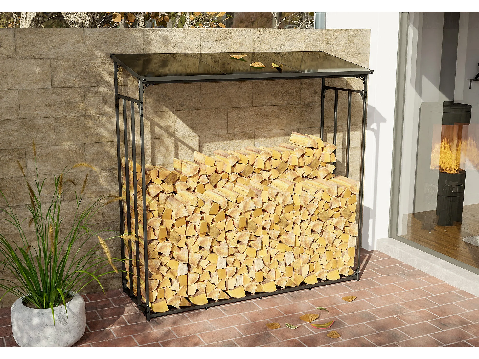 Range-bûches étagère support bois bois marron 185 x 70 x 185 cm 10_0003586