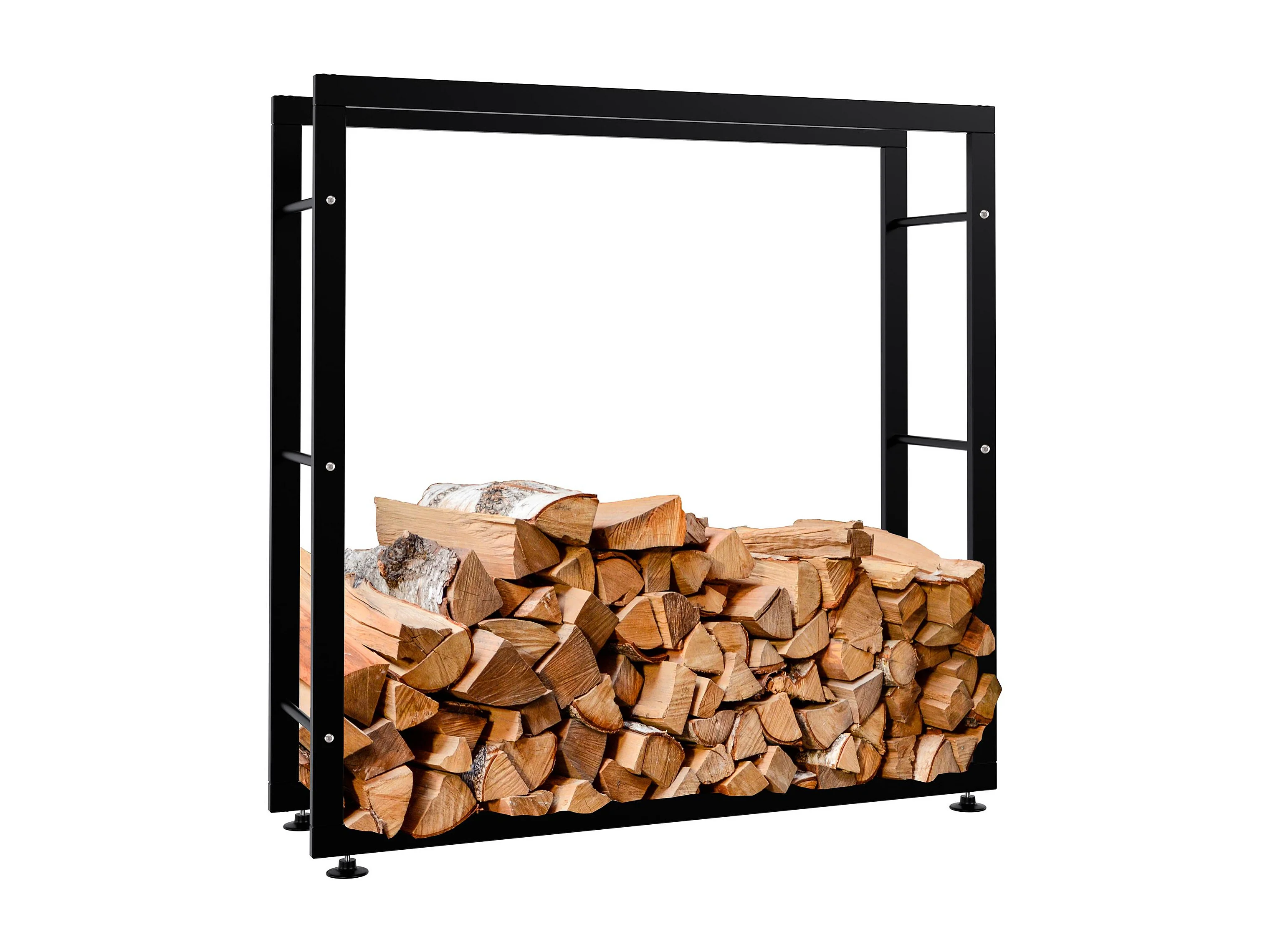 Range-bûches étagère support bois métal marron 80 x 25 x 150 cm 10_0003560