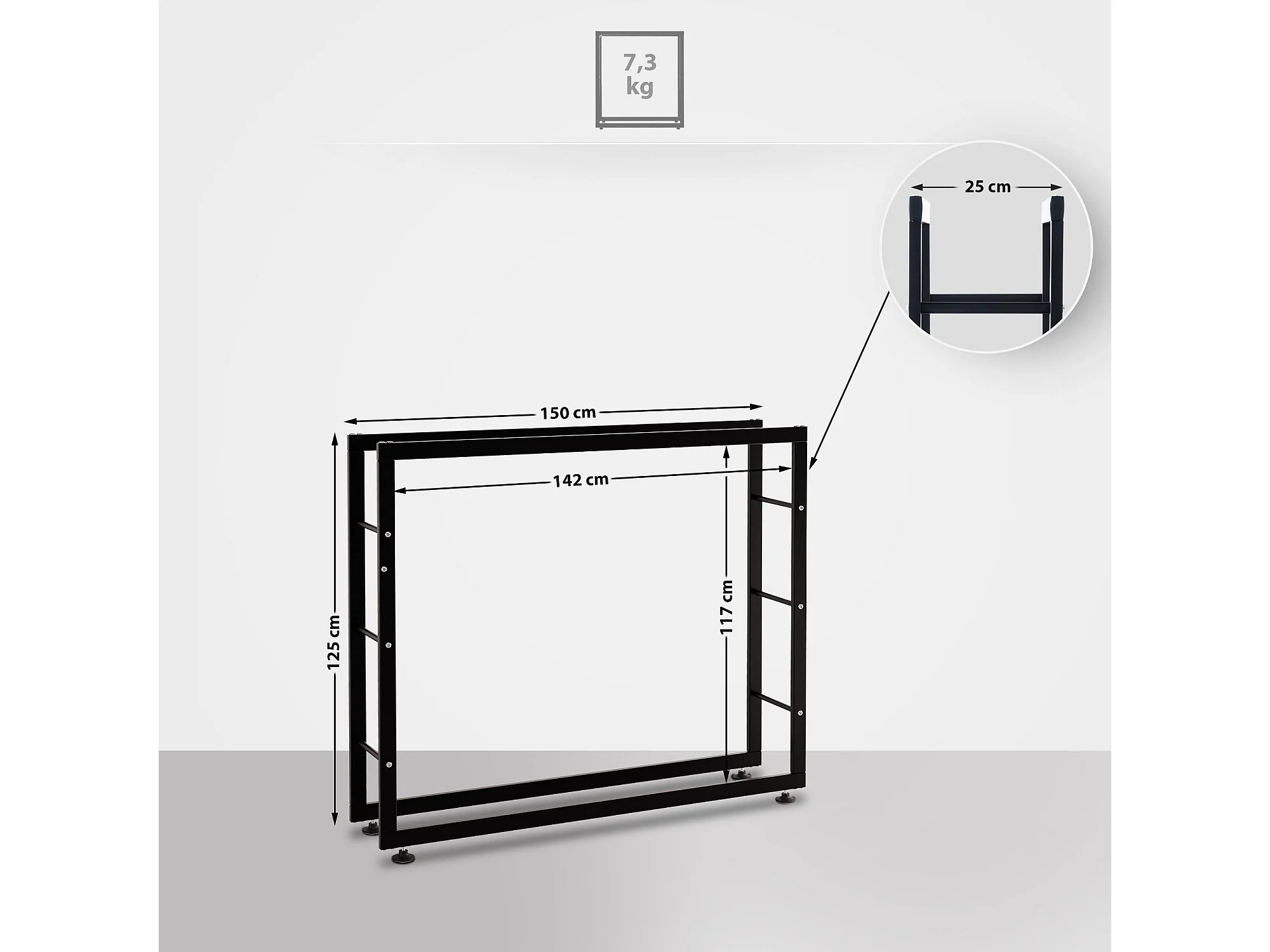 Range-bûches étagère support bois métal marron 150 x 25 x 125 cm 10_0003550