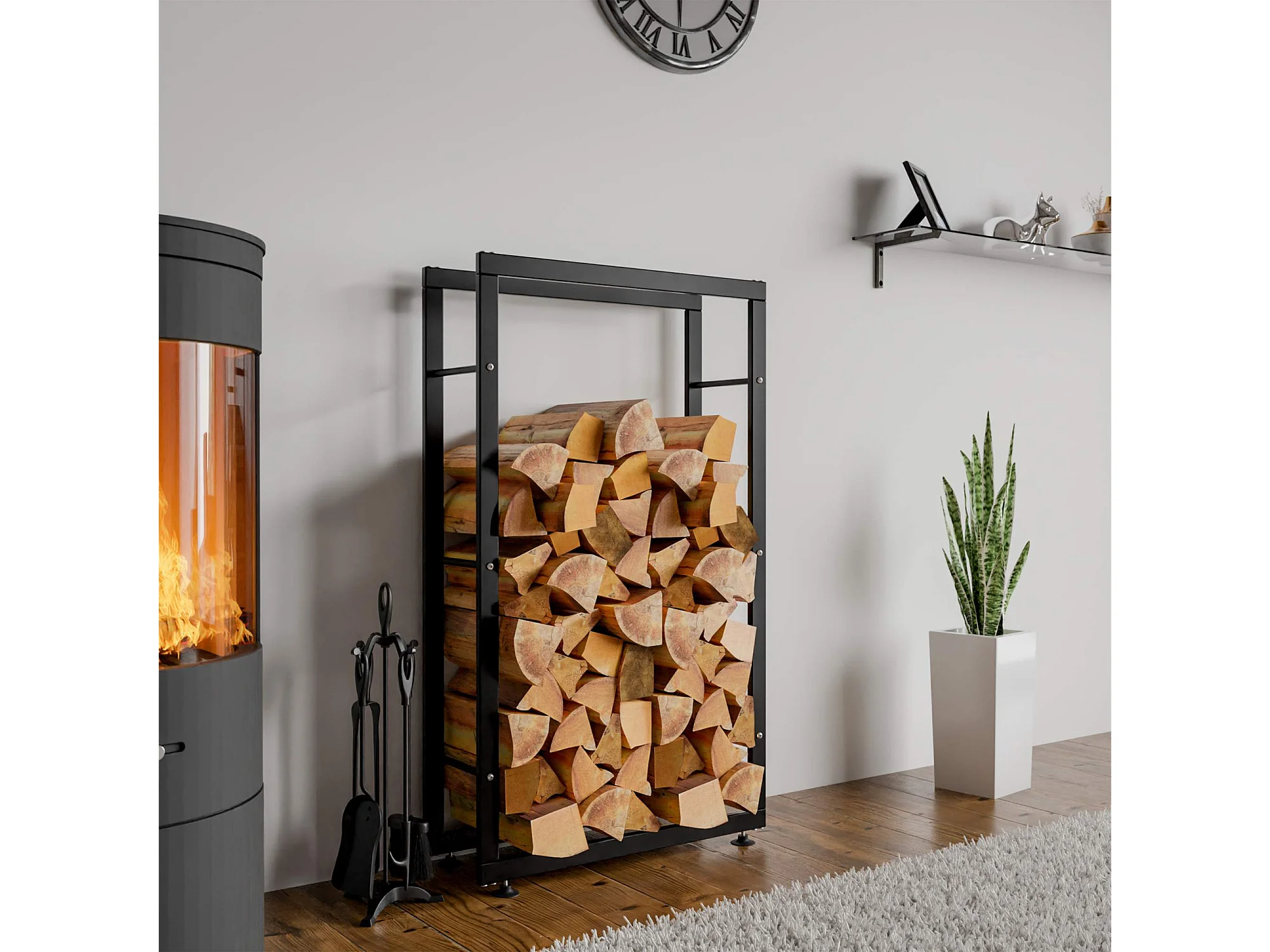 Range-bûches étagère support bois argenté 60 x 25 x 100 cm 10_0003539