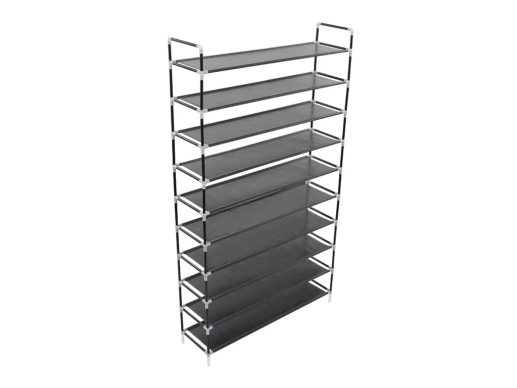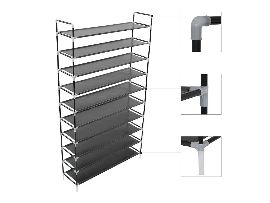 Range-chaussures avec 10 étagères Métal et Tissu non tissé Noir