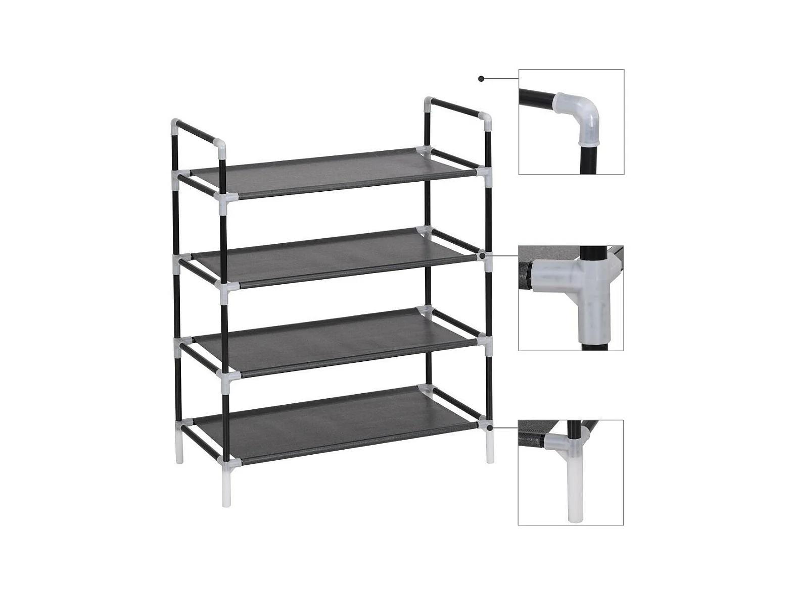 Range-chaussures avec 4 étagères Métal et plastique noir