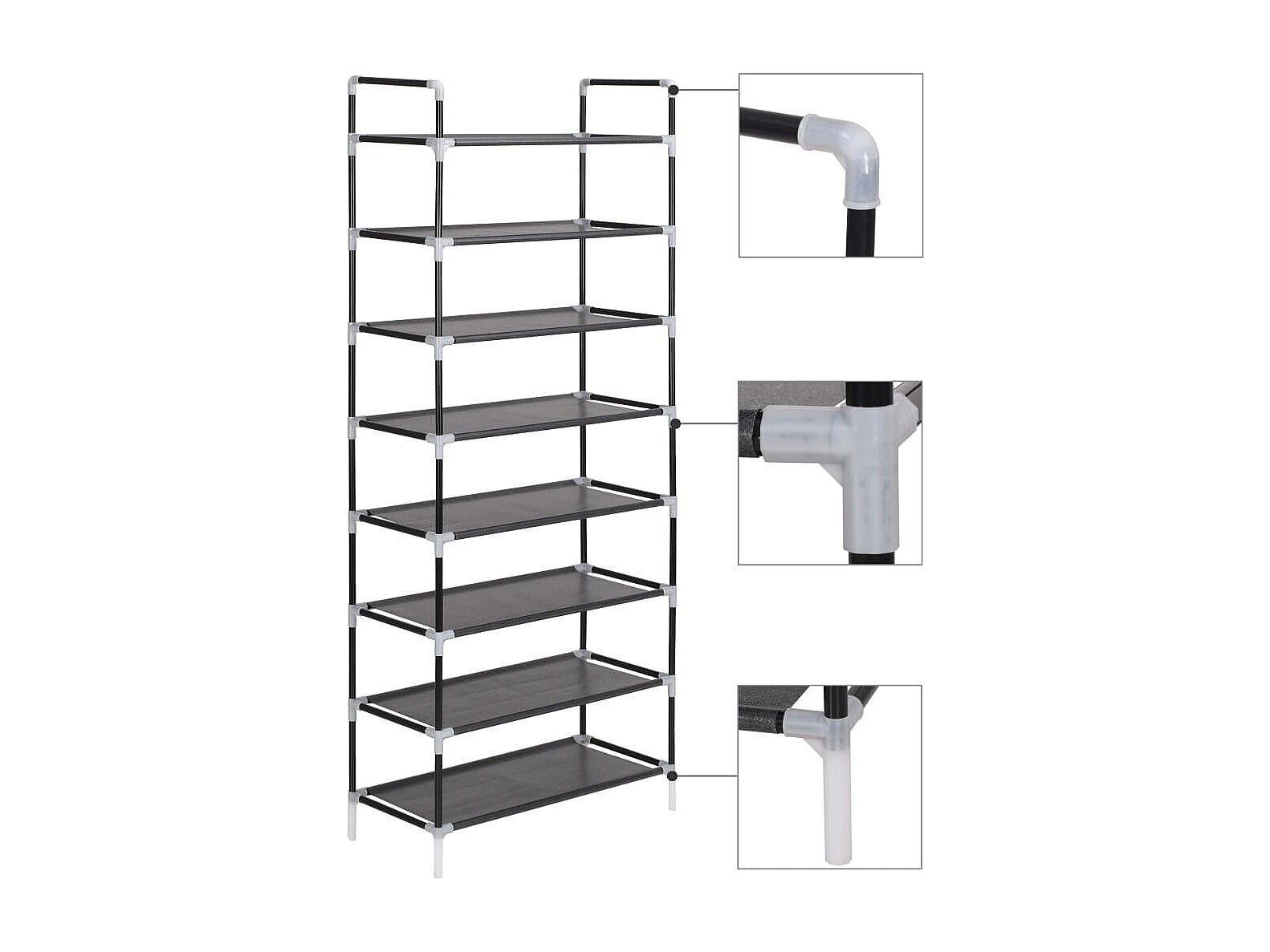 Range chaussures avec 8 étagères Métal et Tissu non tissé Noir