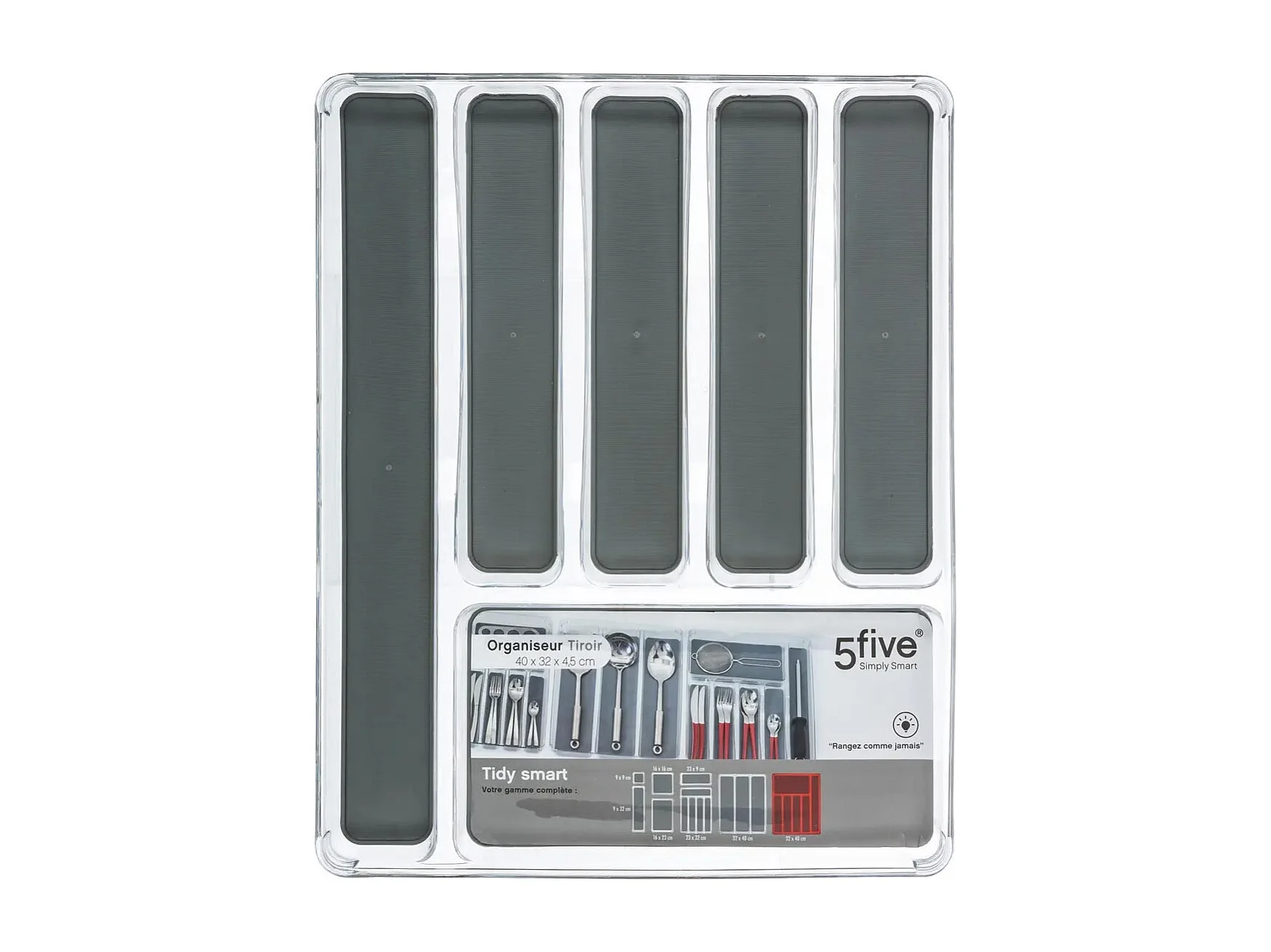 Range-Couverts "6 Compartiments" 40cm Gris