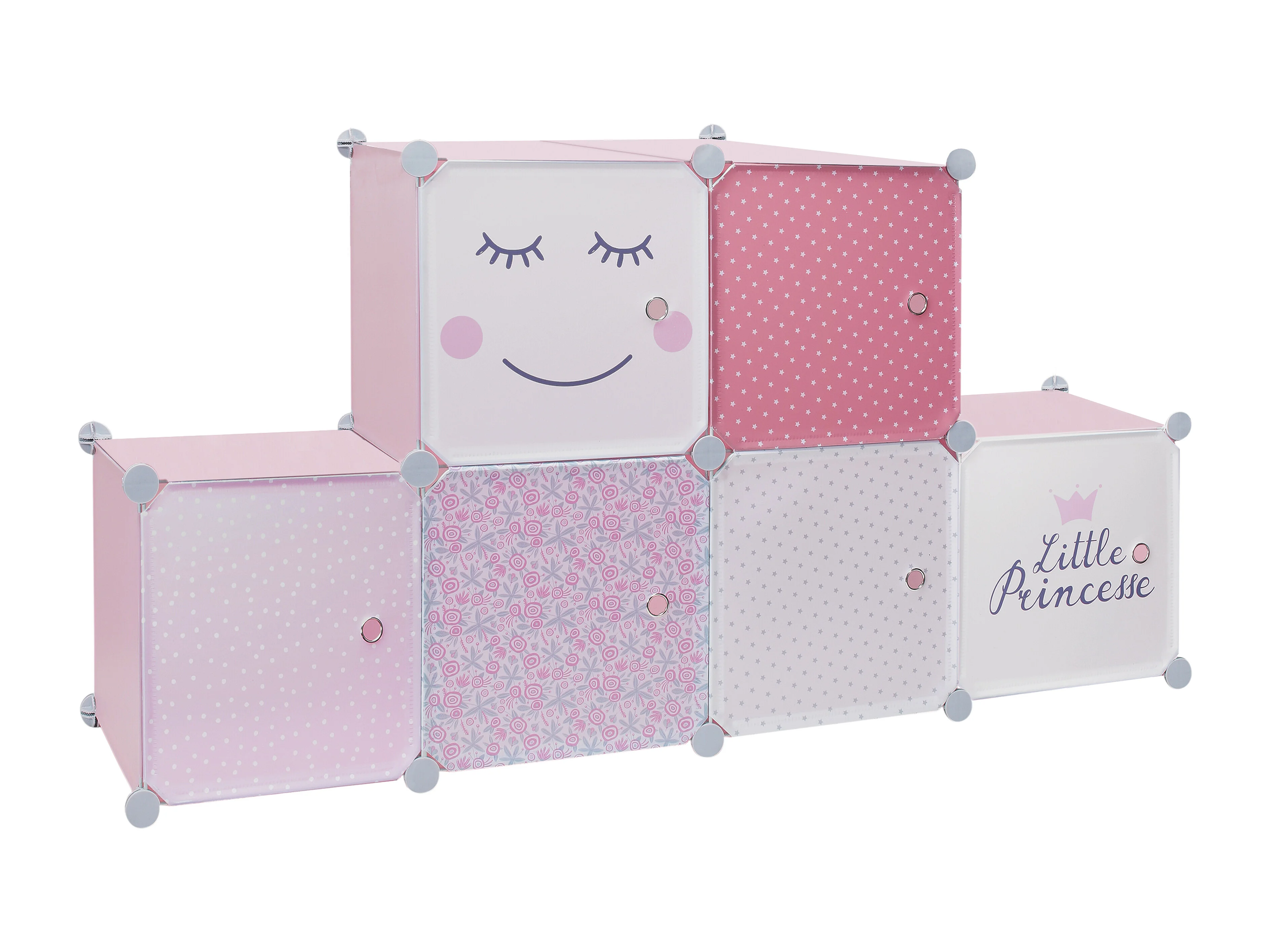Rangement Armoire Modulable 6 Cubes Fille Rose, Blanc, Gris, Violet