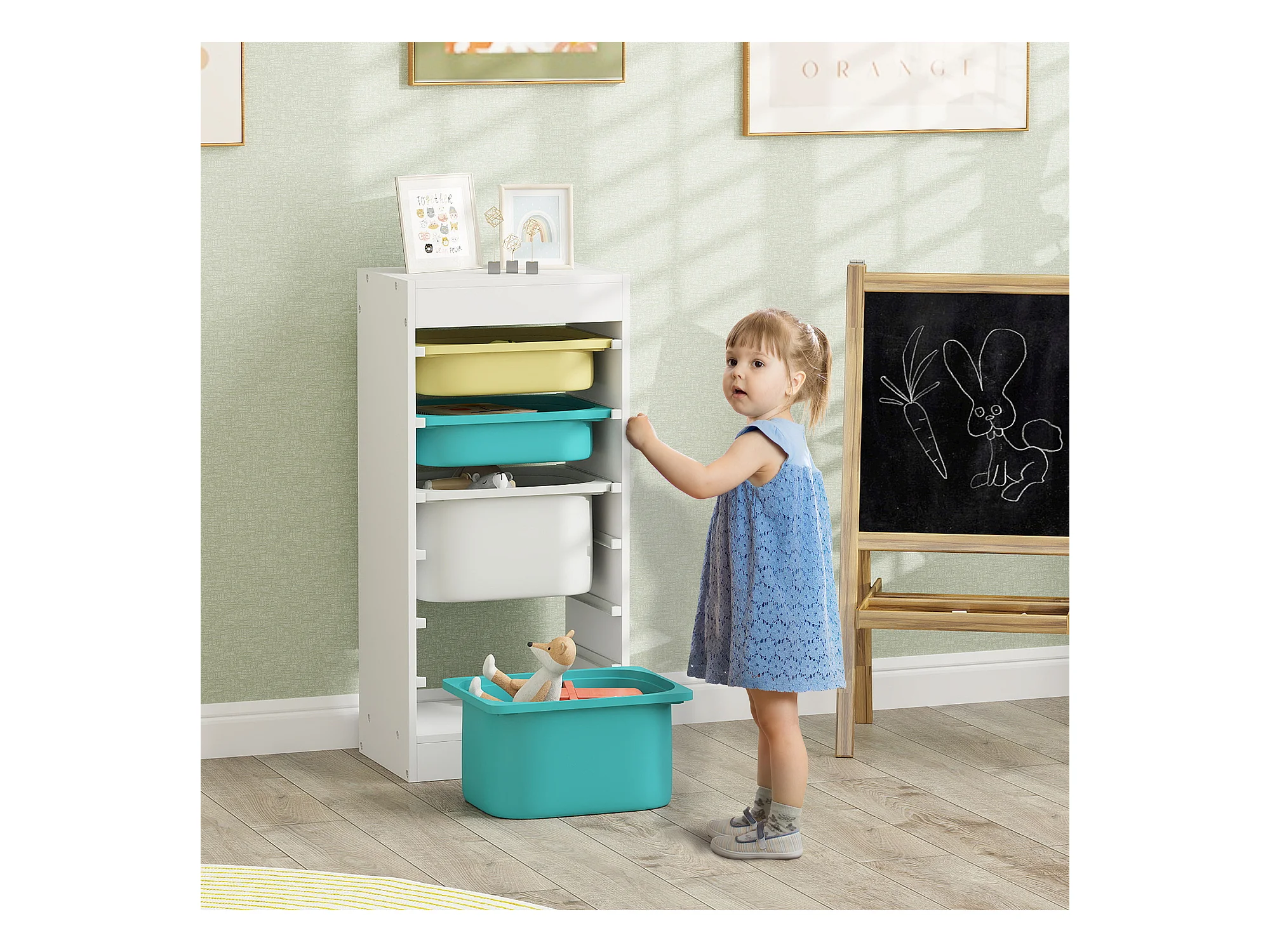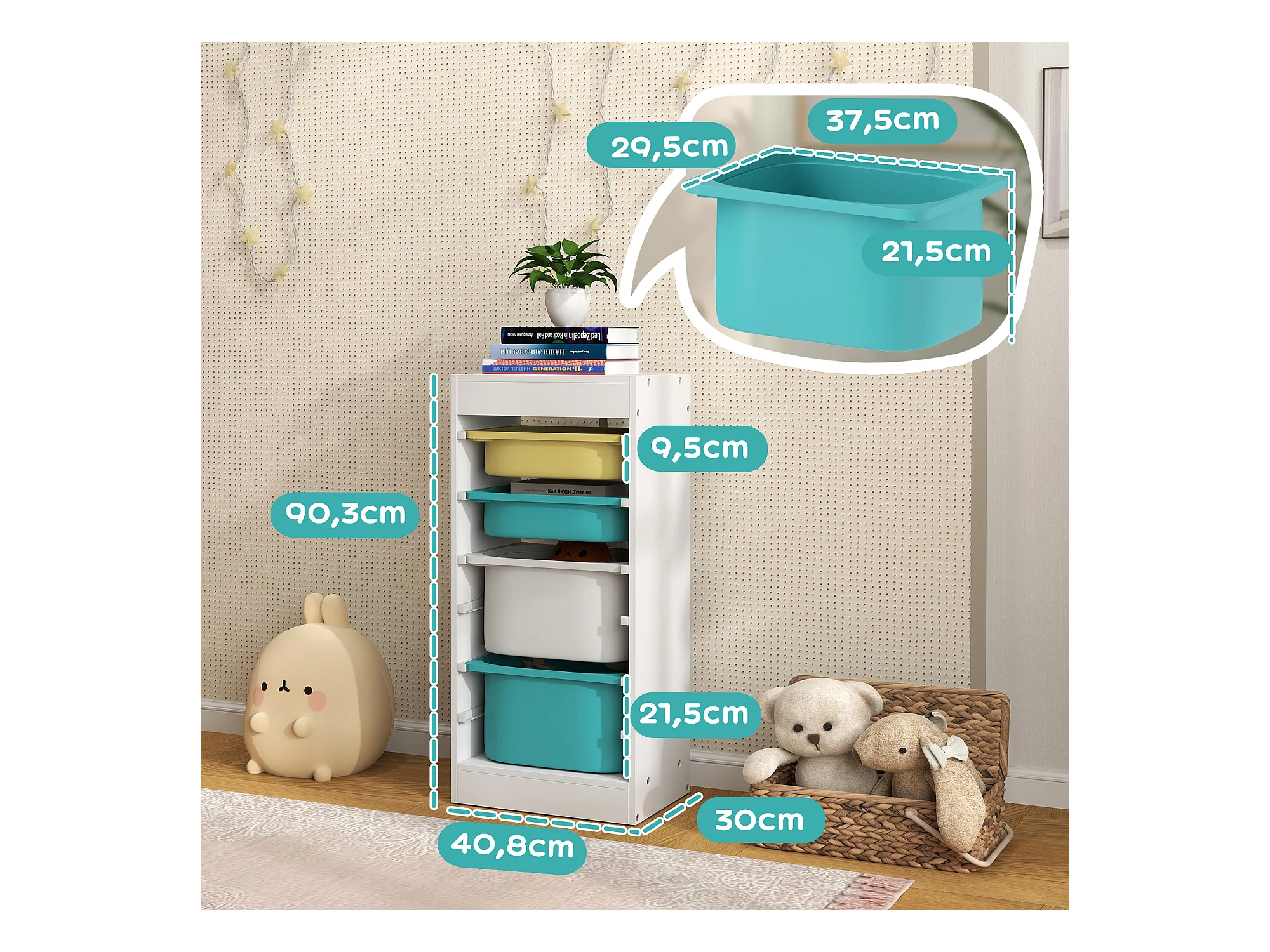 Meuble de rangement enfant 4 bacs de rangement. 41.5 x 30 x 89cm (Lot de 2) blanc
