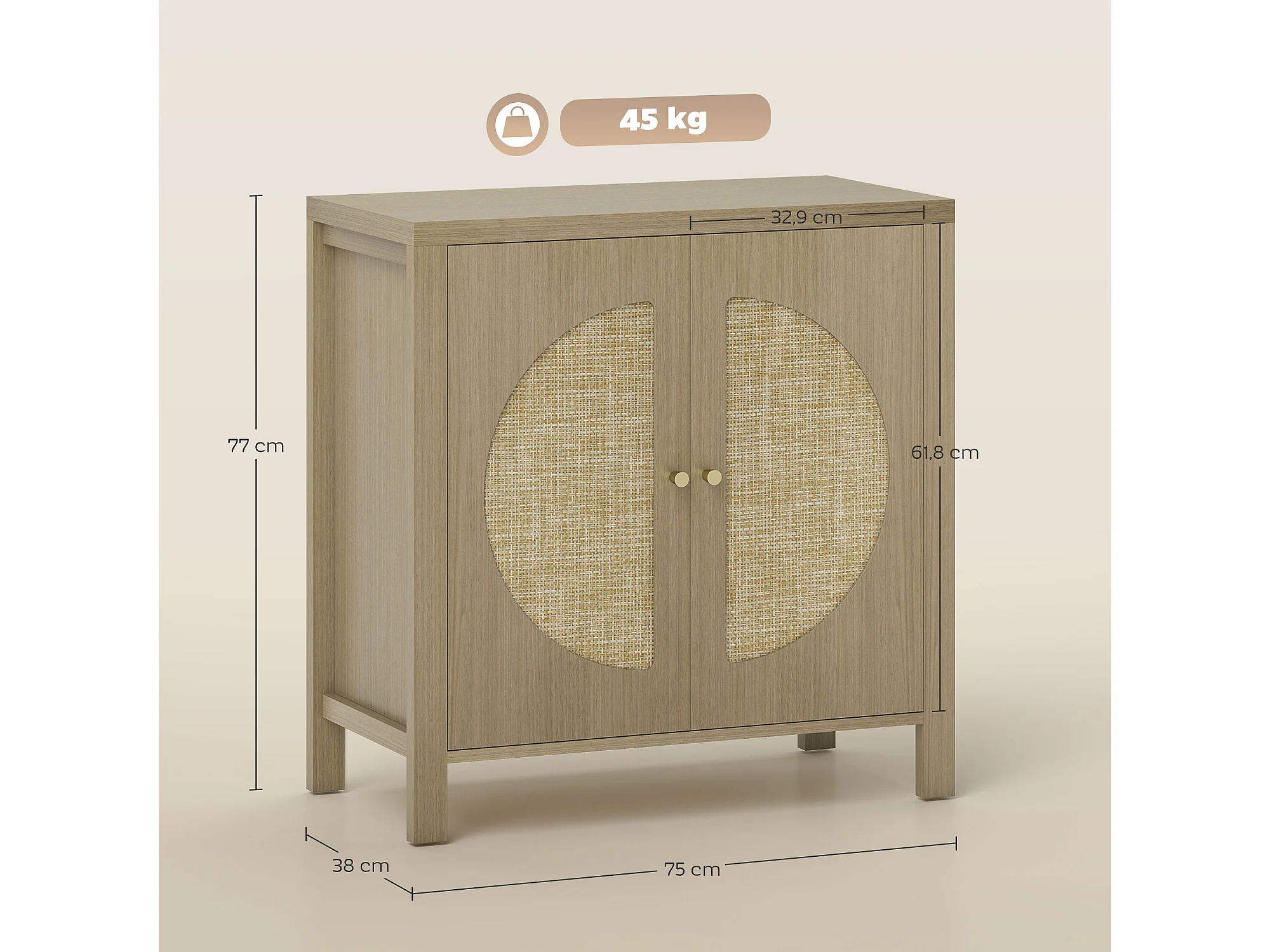Rangement petit buffet 2 portes étagère style naturel rotin effet bois naturel taupe