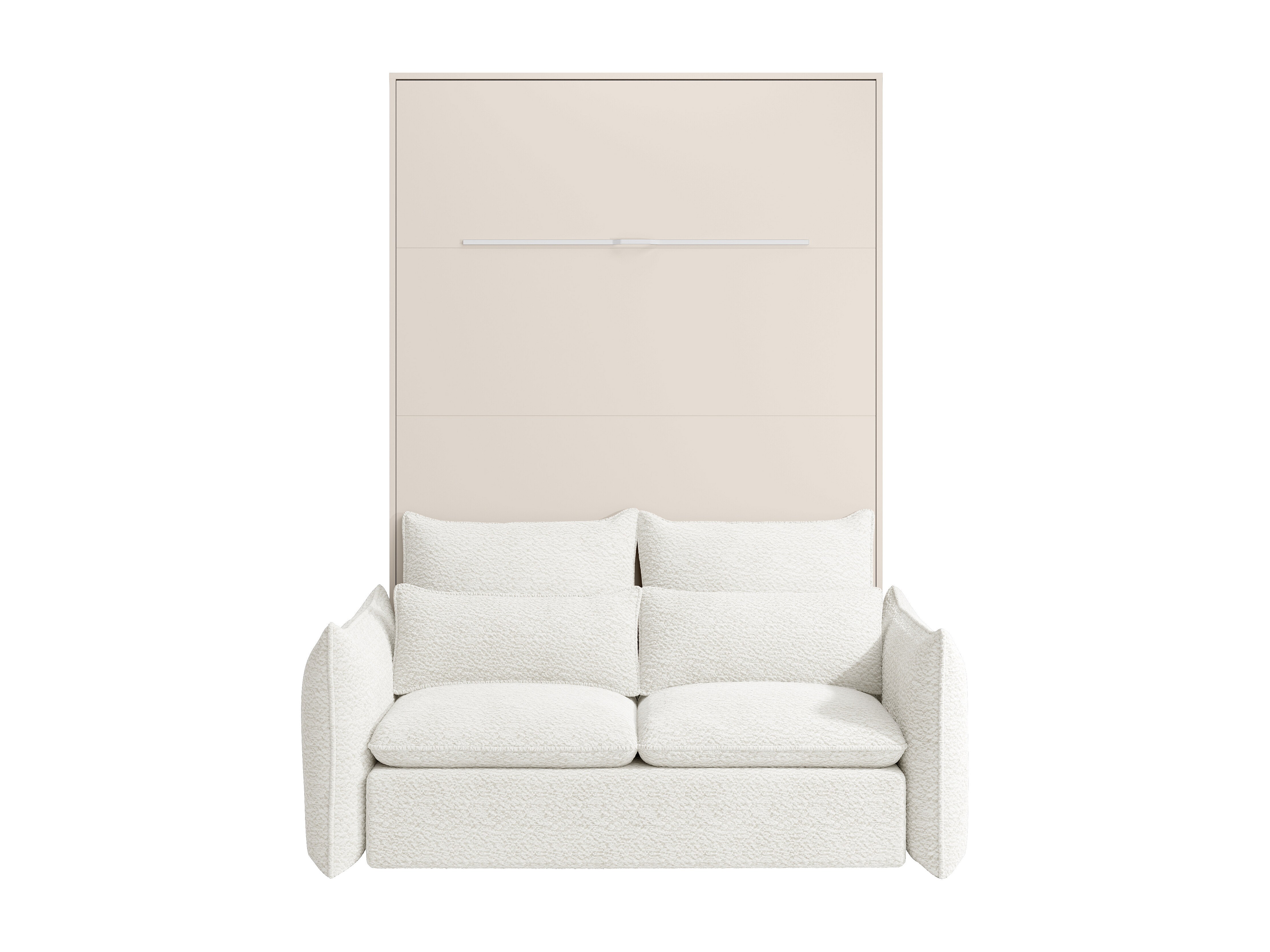 Lit escamotable 140 x 200 cm - Ouverture verticale manuelle - Avec LEDs - Beige + Canapé - RAPILI