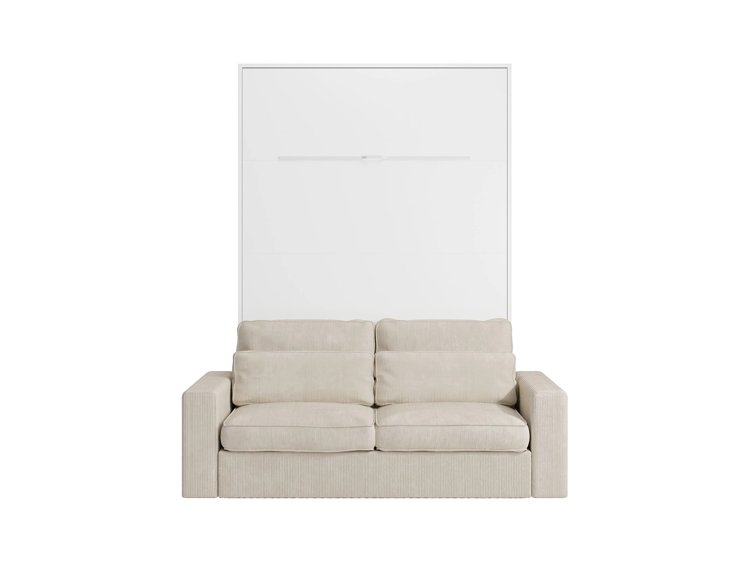 Lit escamotable 140 x 200 cm - Ouverture verticale manuelle - Avec LEDs - Blanc + Canapé - RAPILI