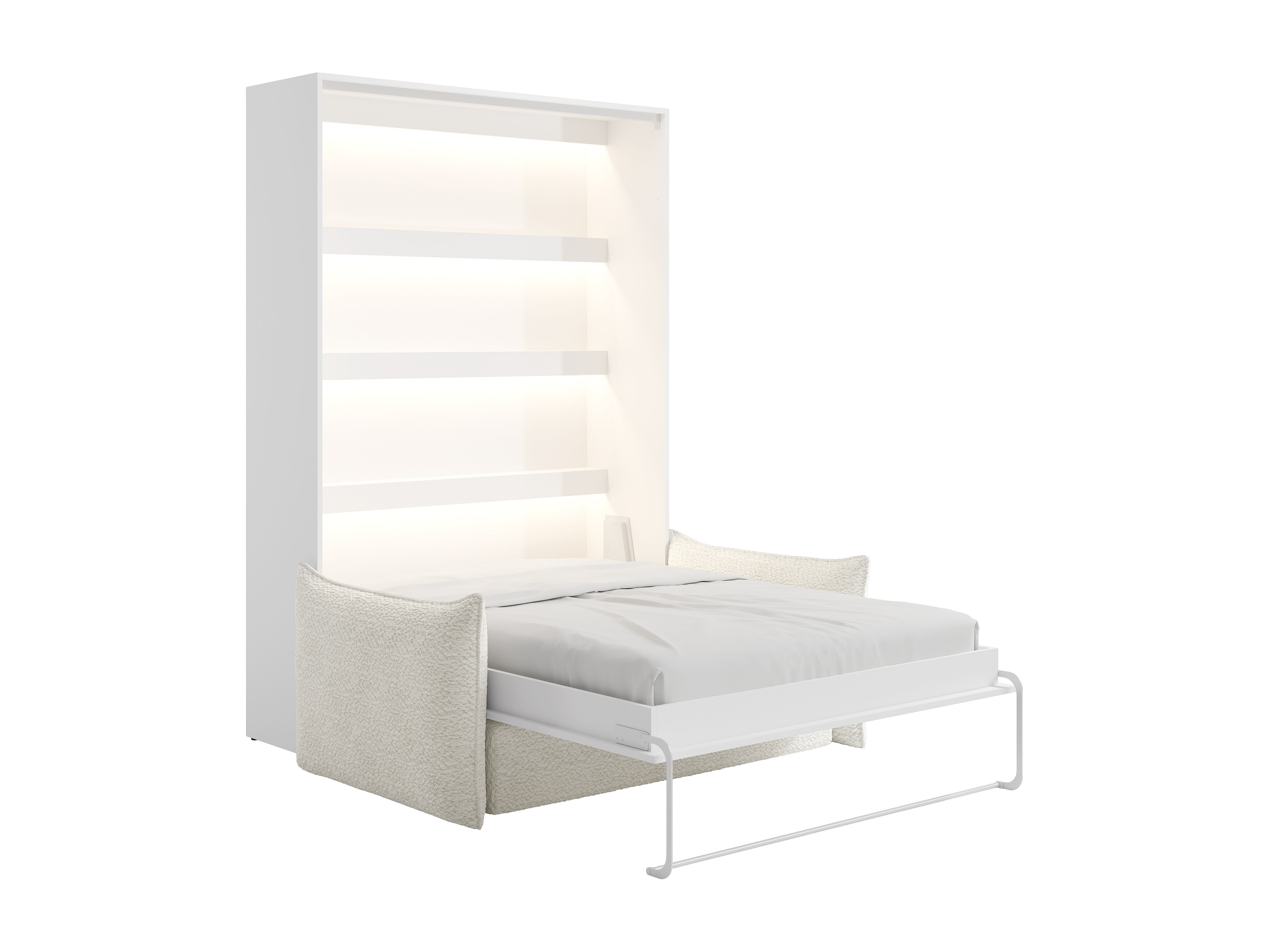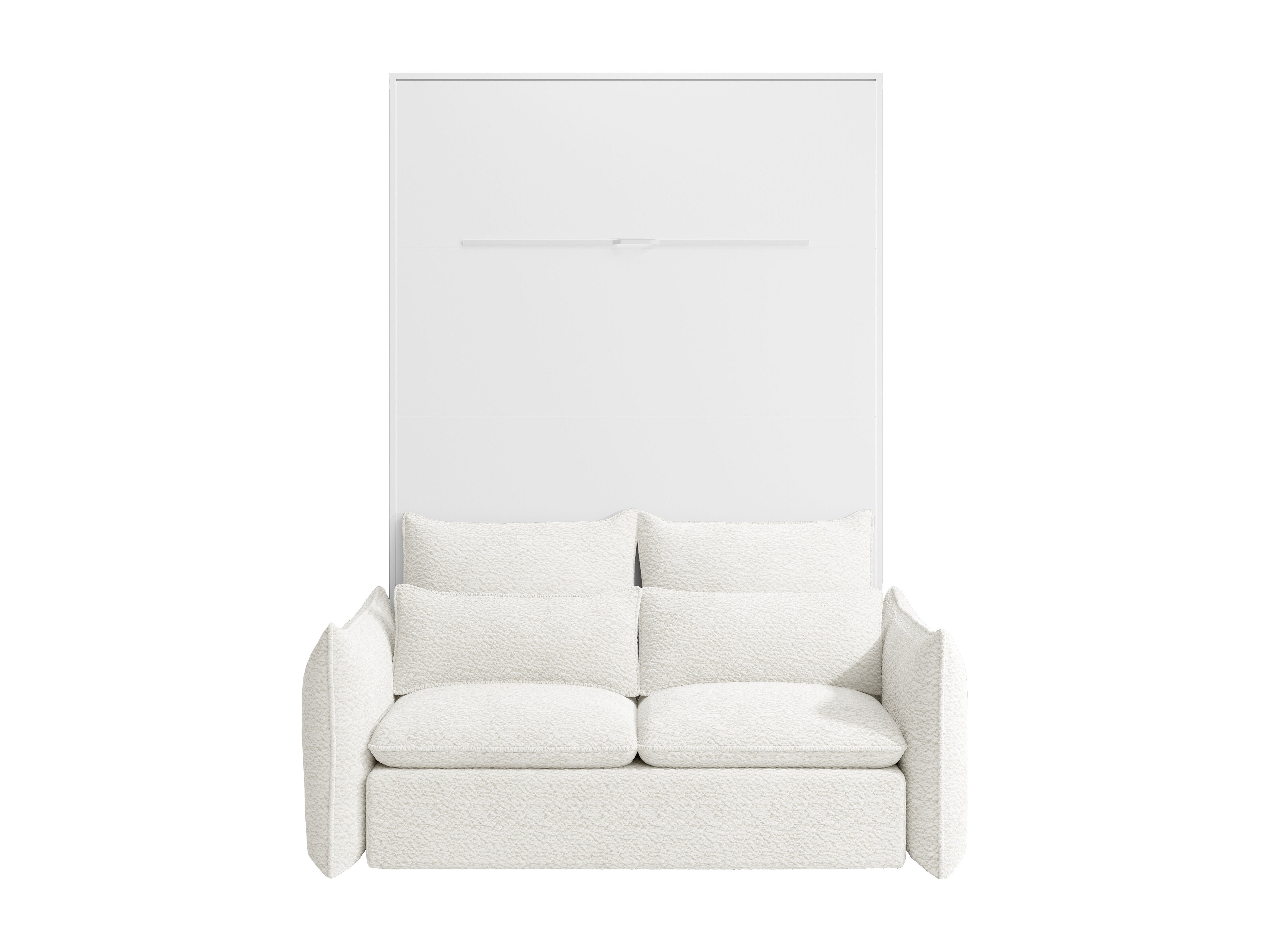 Lit escamotable 140 x 200 cm - Ouverture verticale manuelle - Avec LEDs - Blanc + Canapé - RAPILI