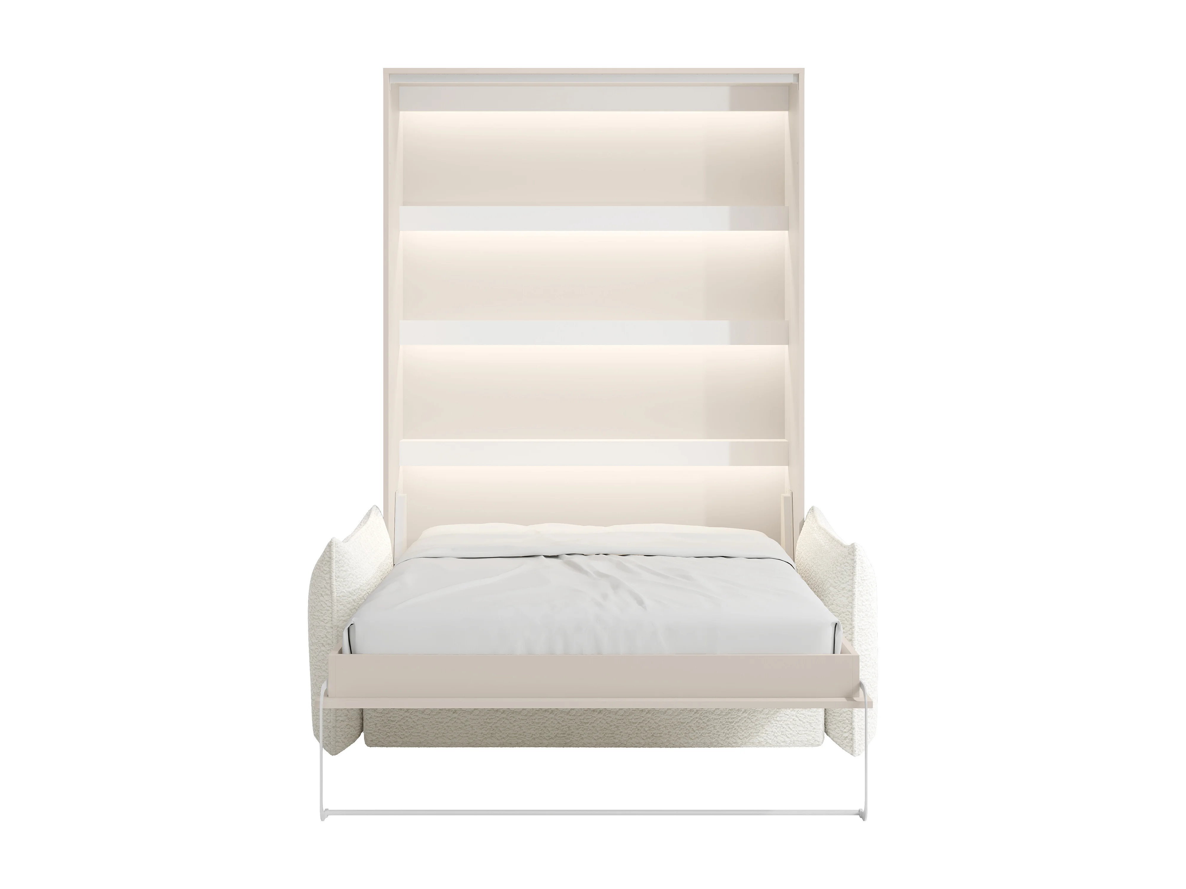Lit escamotable 160 x 200 cm - Ouverture verticale manuelle - Avec LEDs - Beige + Canapé - RAPILI