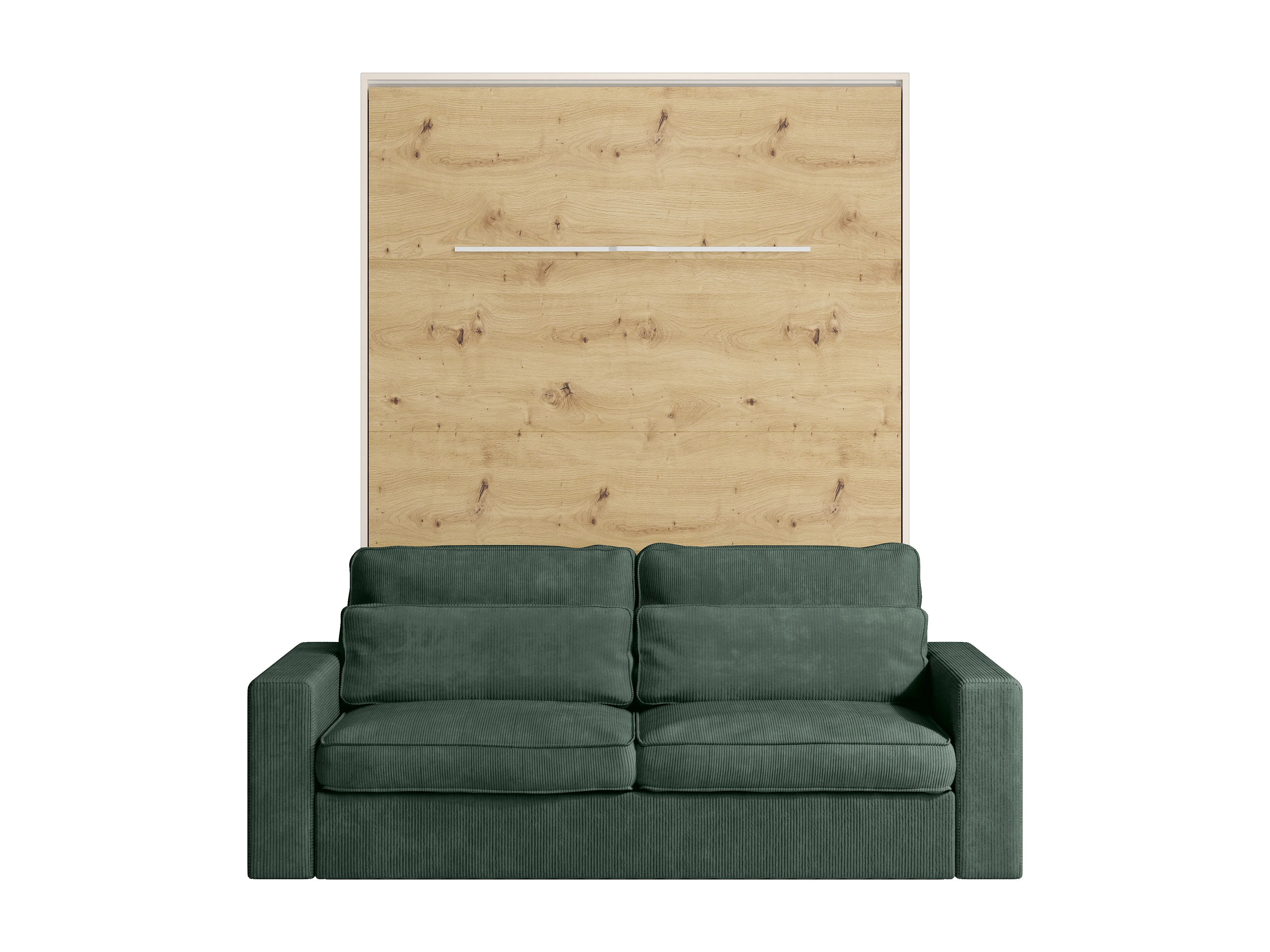 Lit escamotable 160 x 200 cm - Ouverture verticale manuelle - Avec LEDs - Beige et naturel + Canapé Vert + Matelas - RAPILI