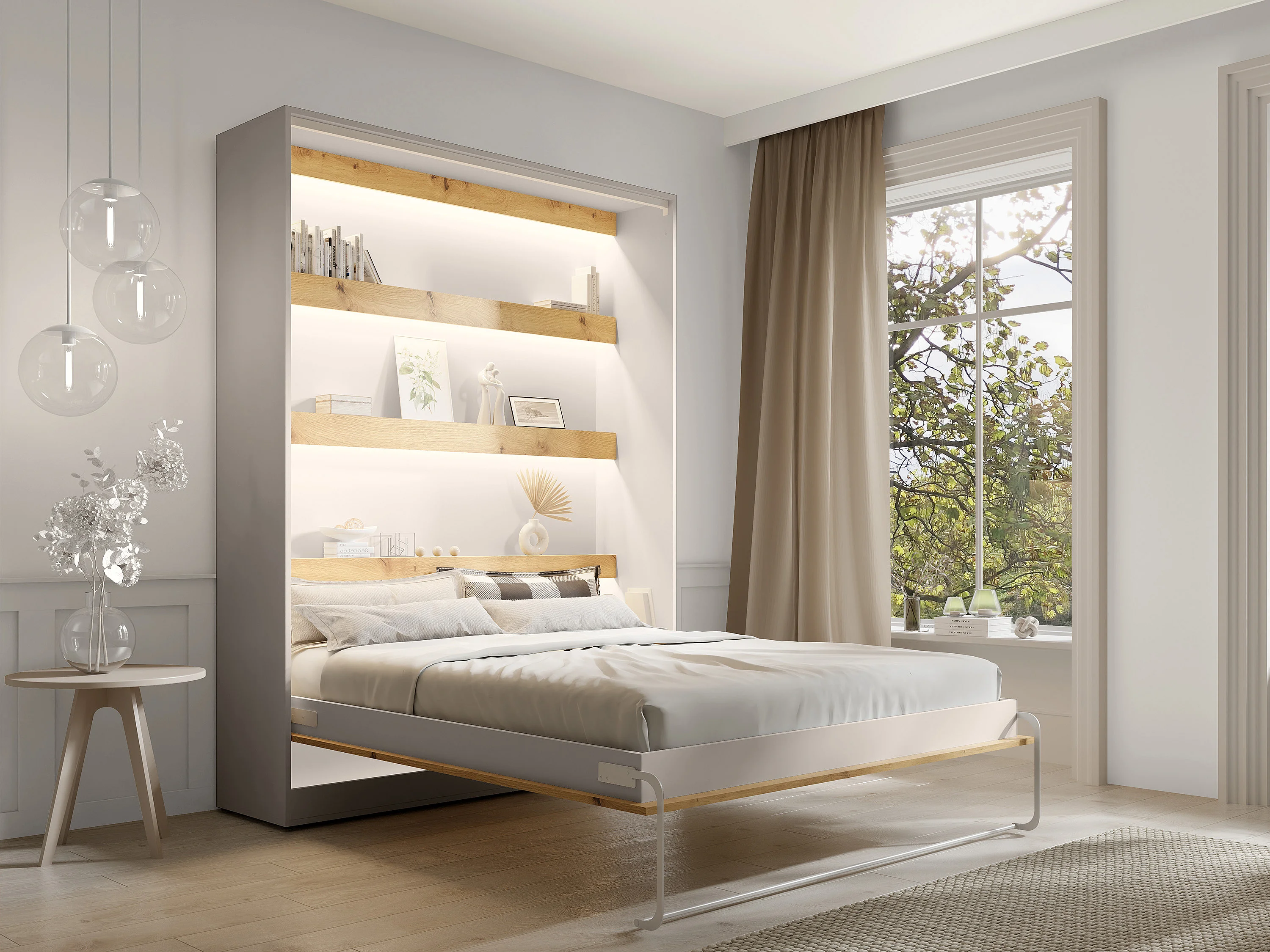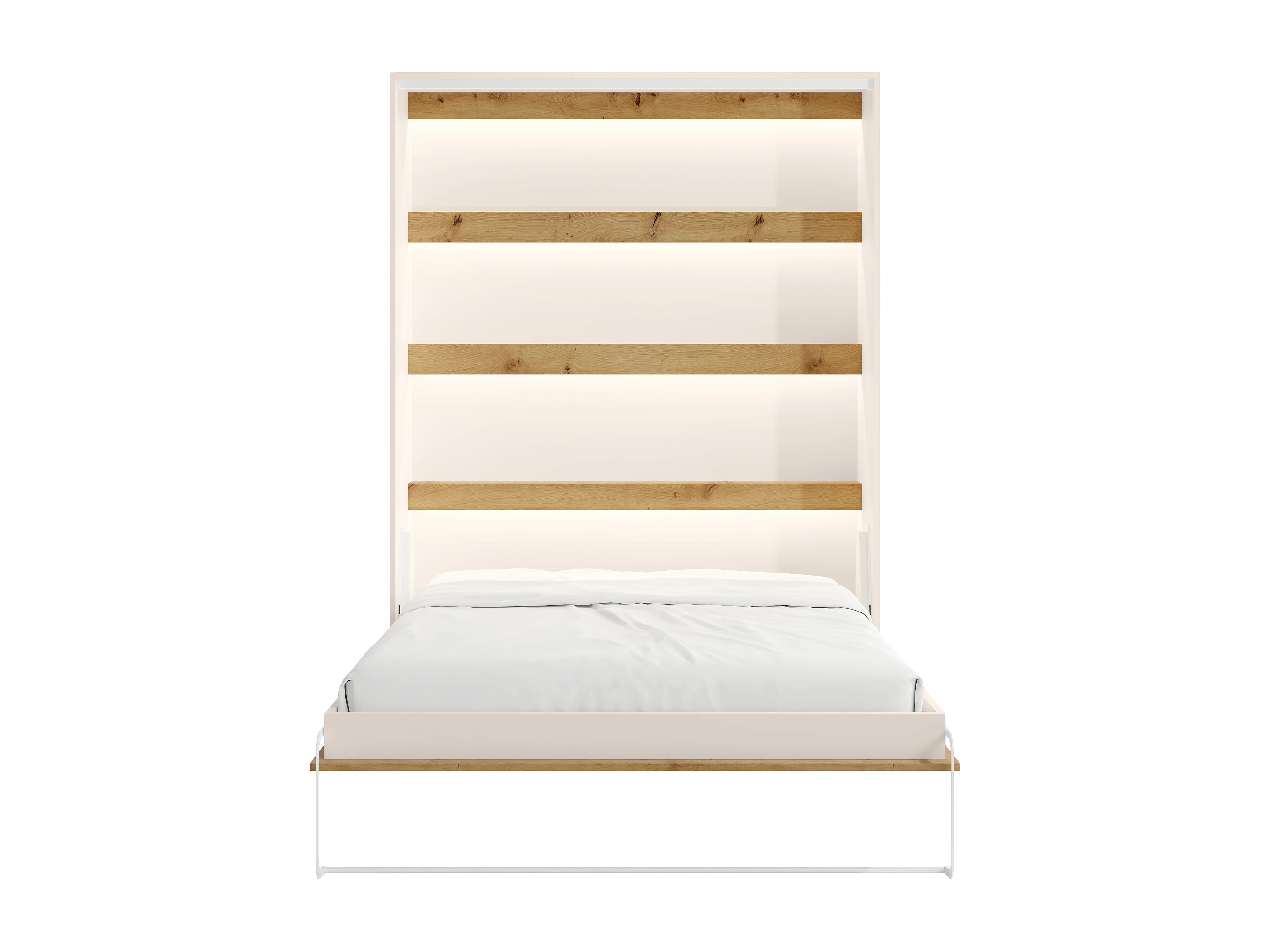 Lit escamotable 160 x 200 cm - Ouverture verticale manuelle - Avec LEDs – Beige et naturel - RAPILI