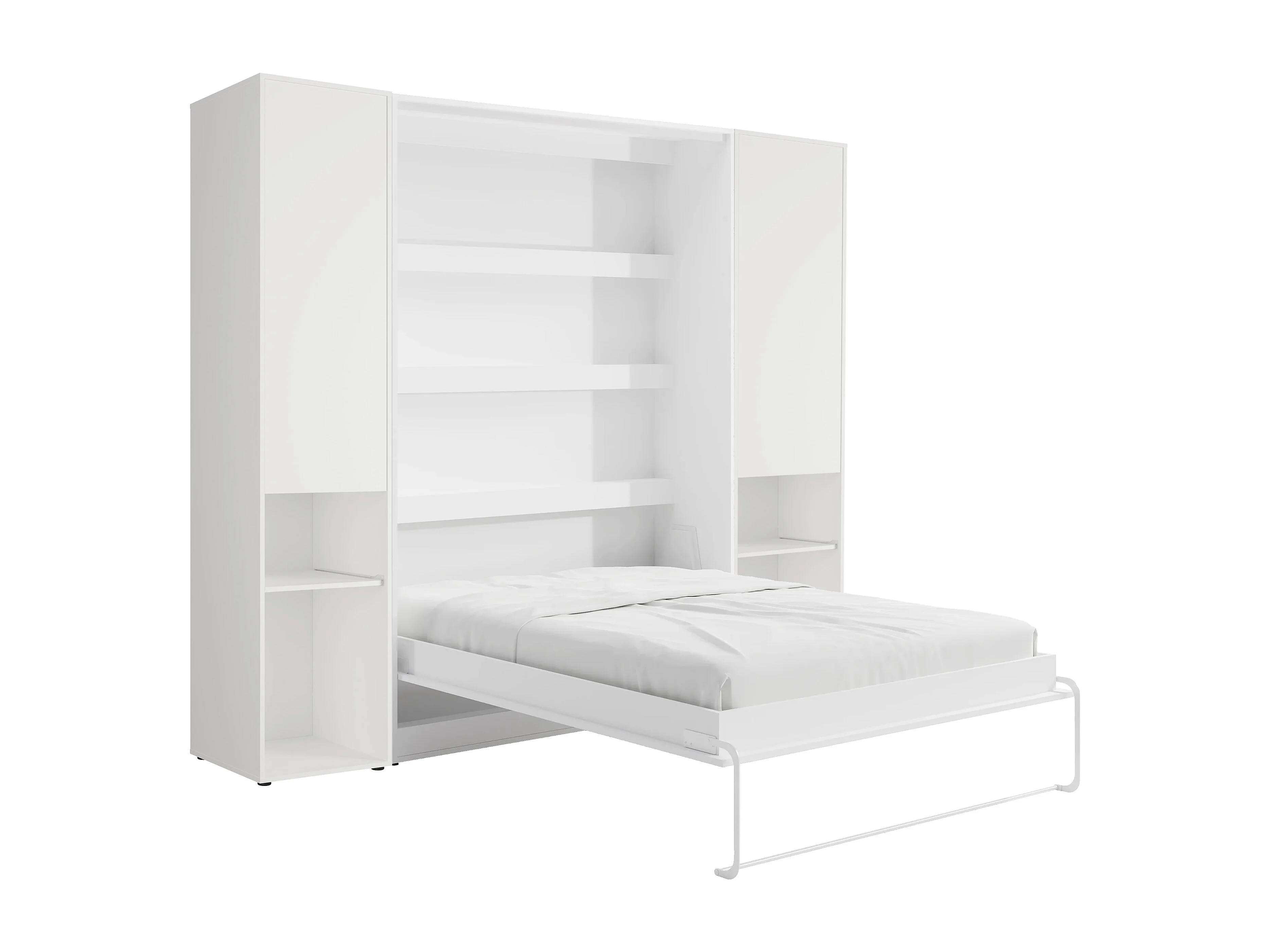 Lit escamotable vertical 140 x 200 cm - 2 colonnes de rangement - Avec LEDs - Blanc + Matelas - RAPILI
