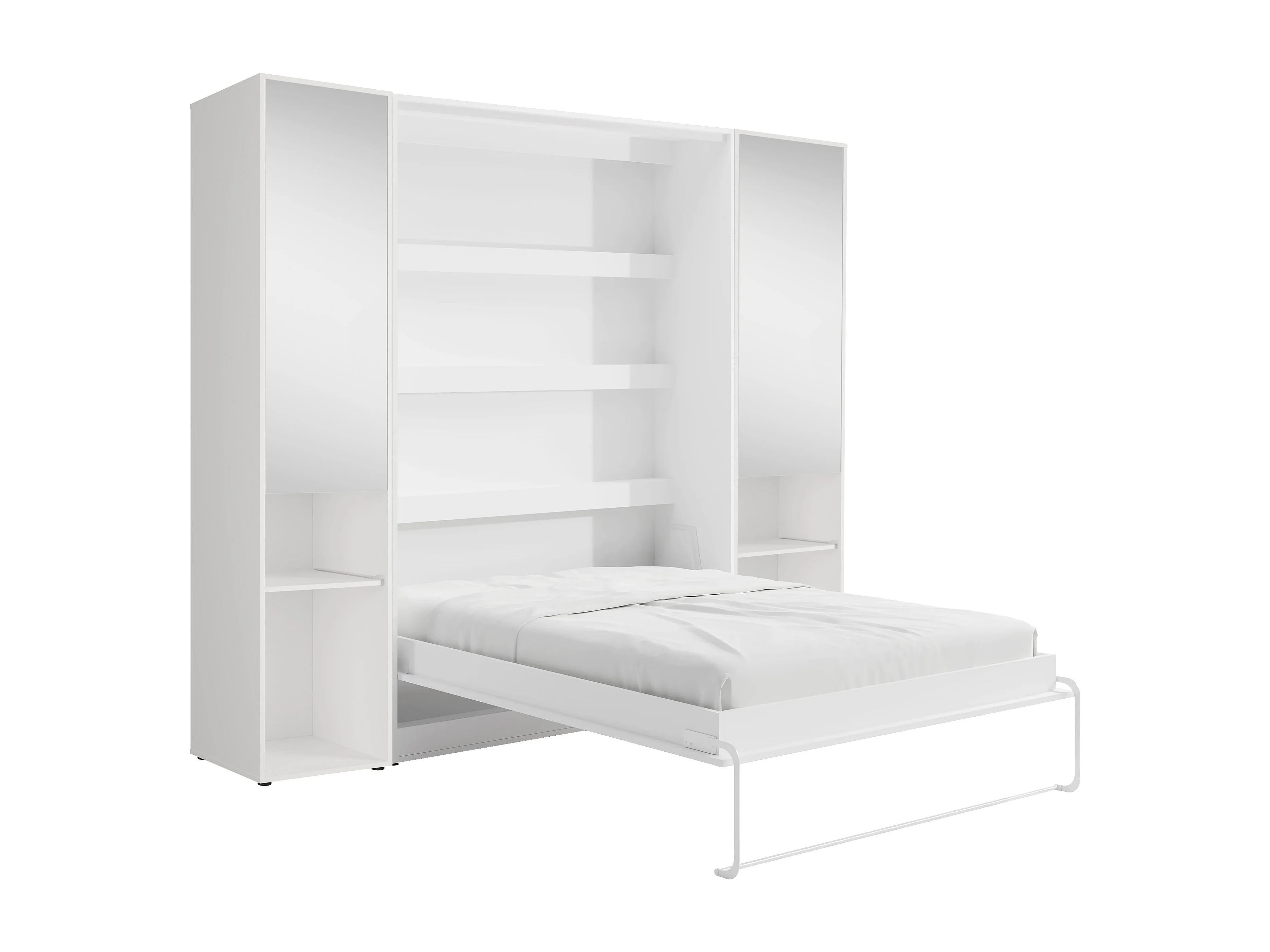 Lit escamotable vertical 140 x 200 cm - 2 colonnes de rangement - Avec miroirs et LEDs - Blanc - RAPILI