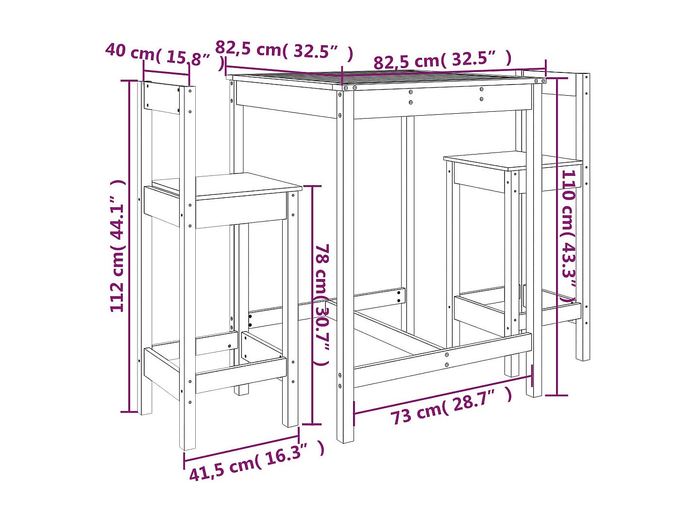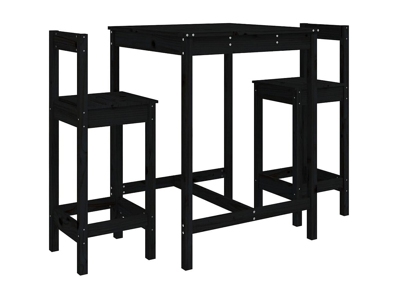 Rasmus Ensemble de bar de jardin 3 pcs noir bois de pin massif