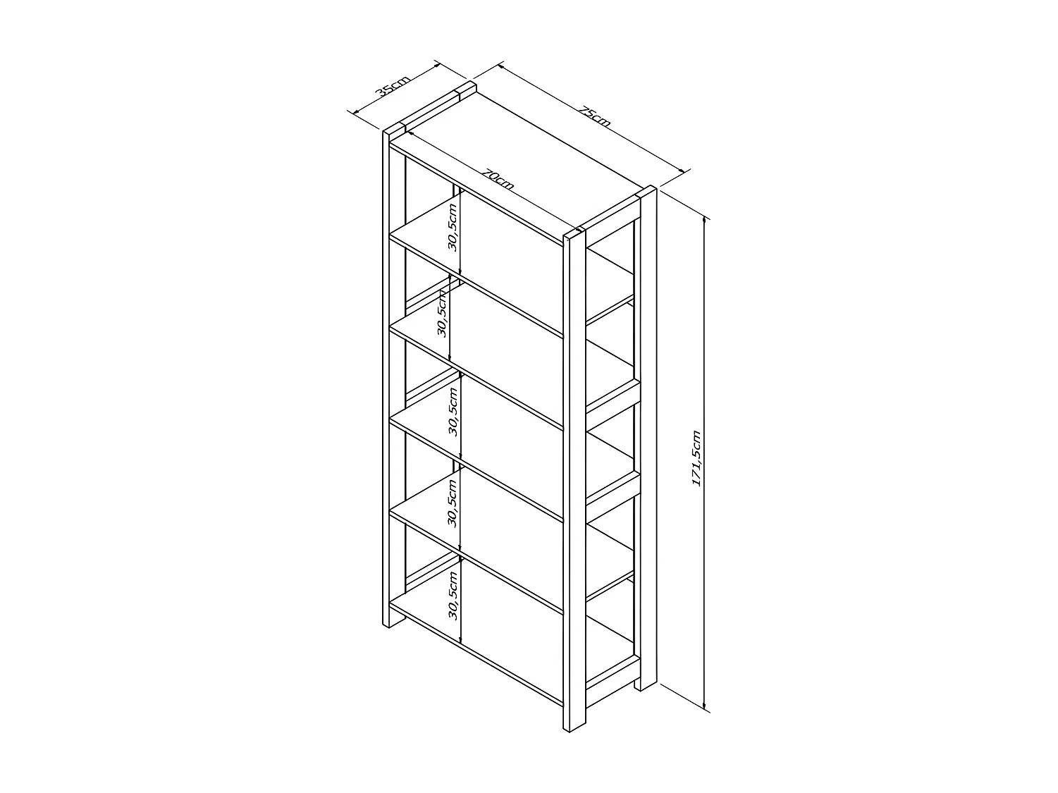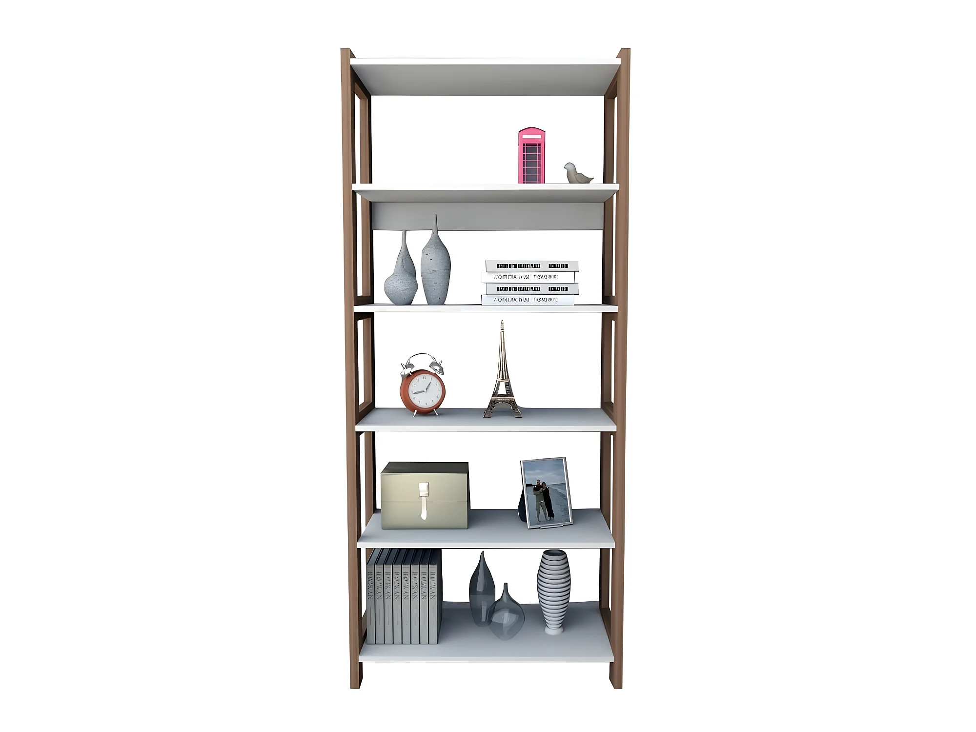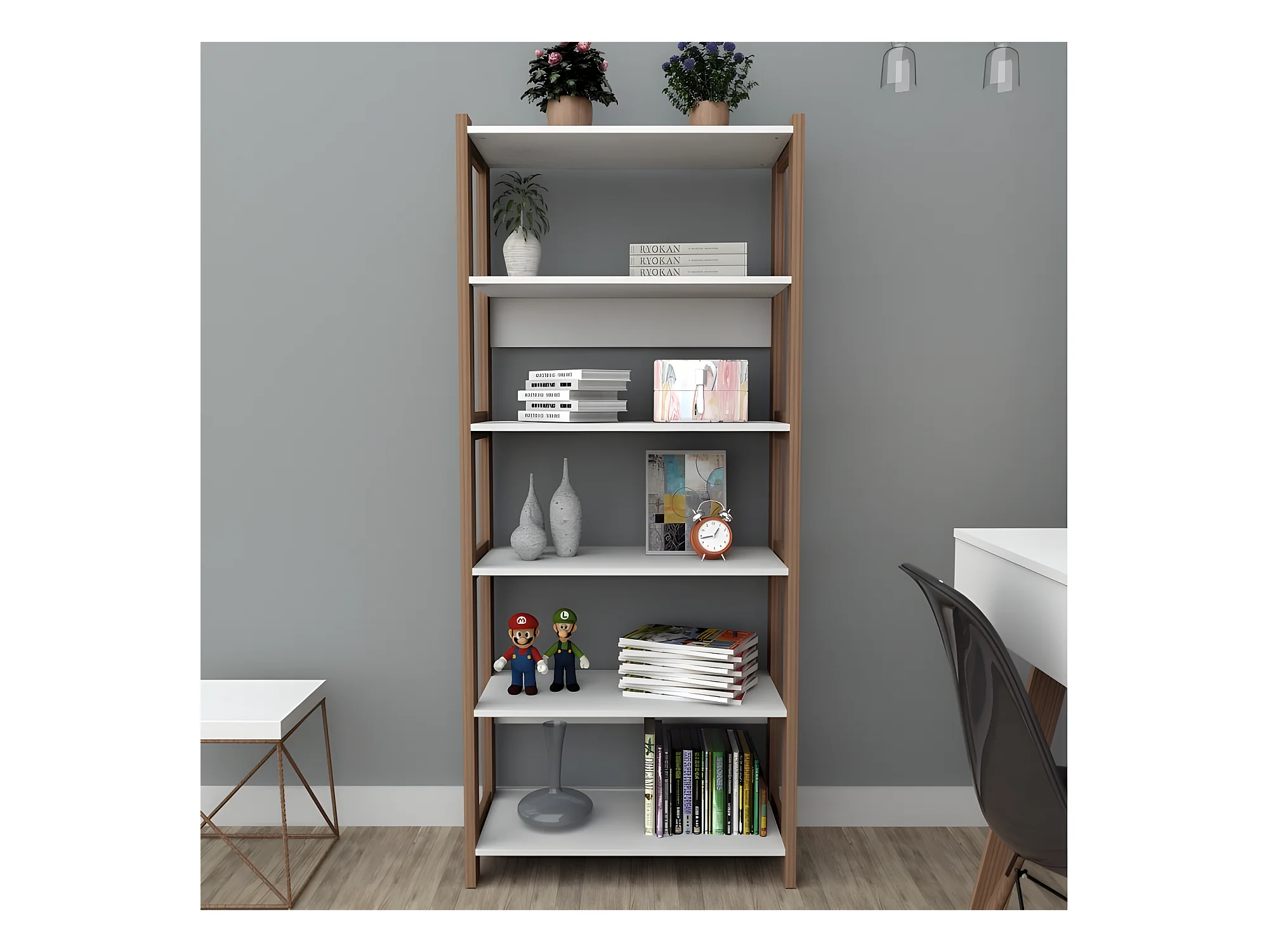 Rayonnage 5 Etagères Blanc Châtaignier 5 Niches L 75 H 171.5 P 35 cm