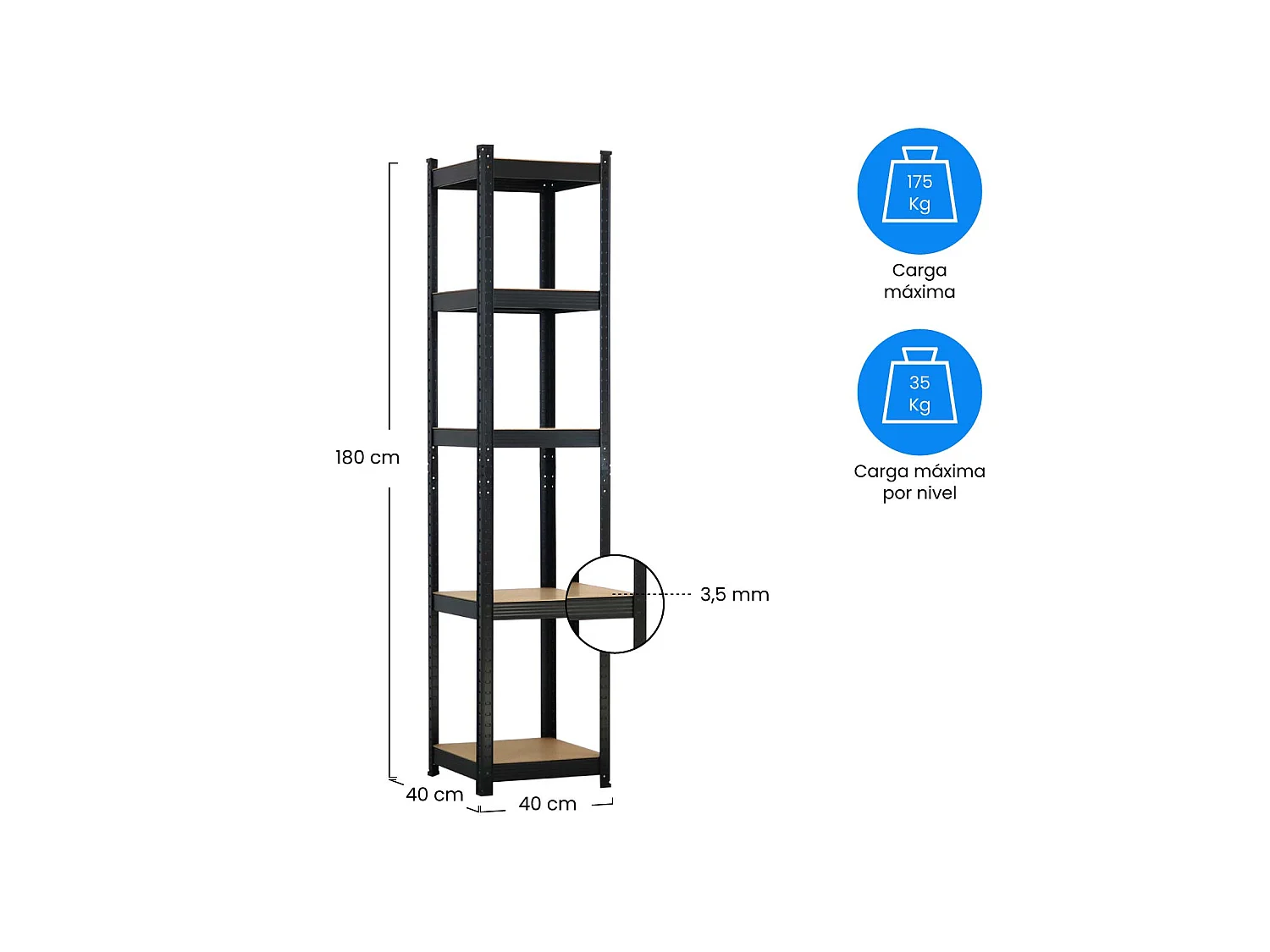 Rayonnage modulaire avec 5 étagères réglables 180x40x40cm 175Kg O91
