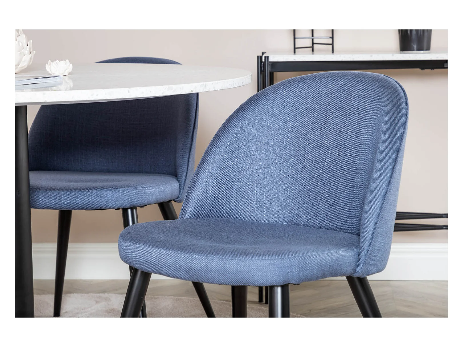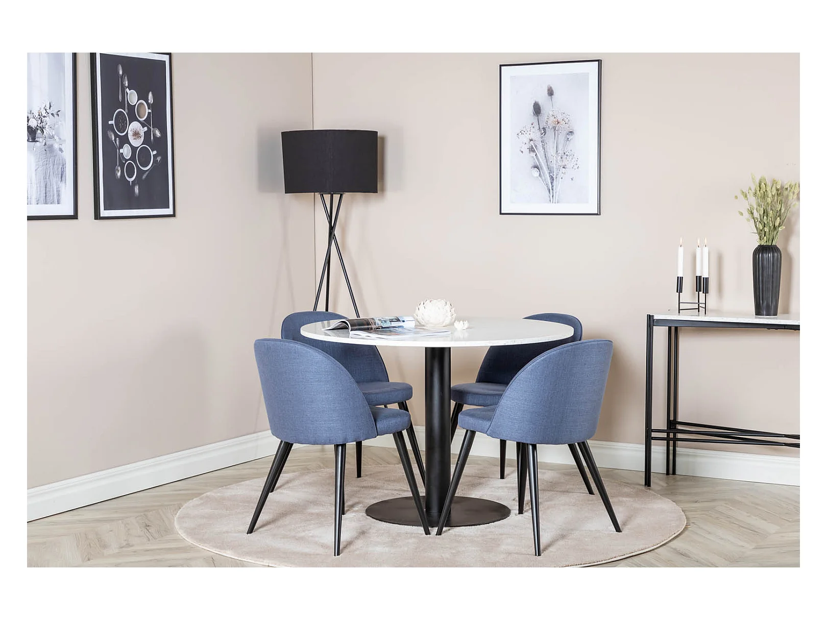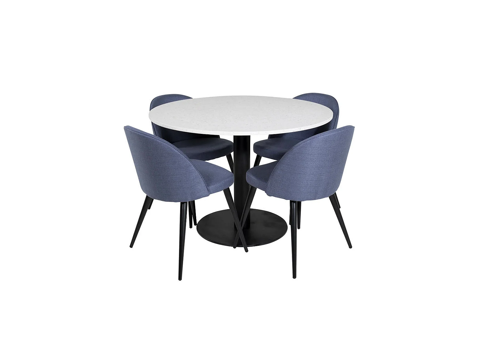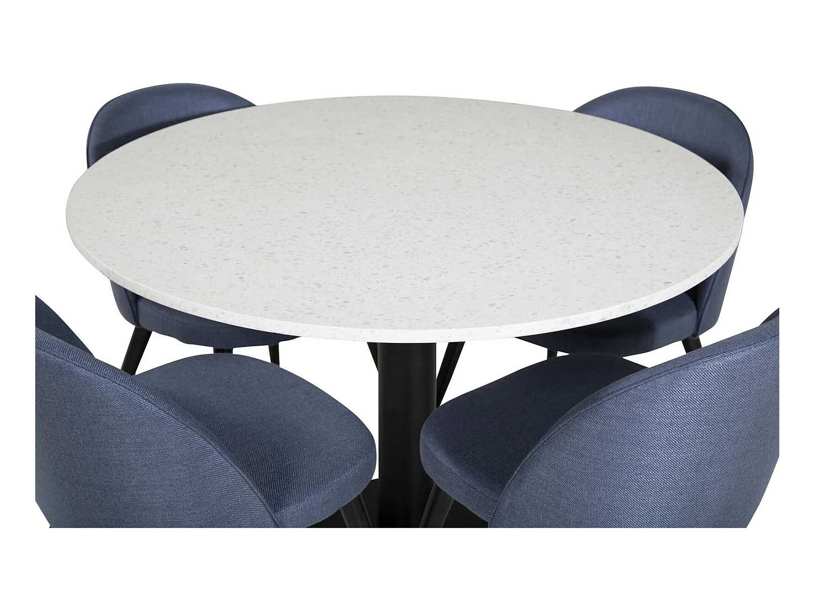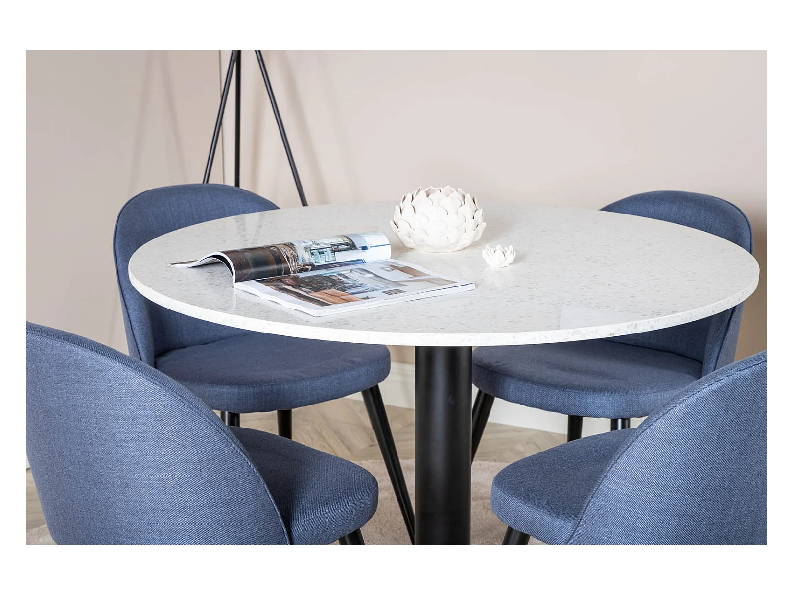 RazziaWH ensemble table, table terrazzo blanc et 4 Velvet chaises bleu.