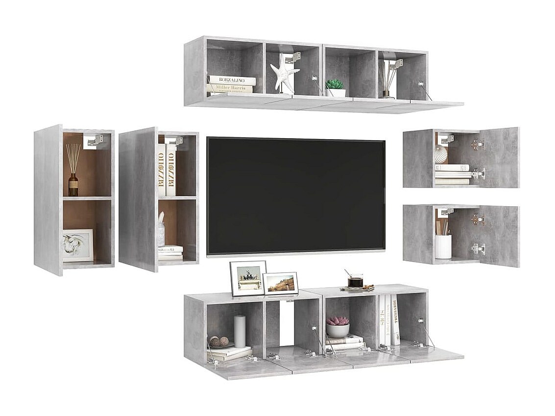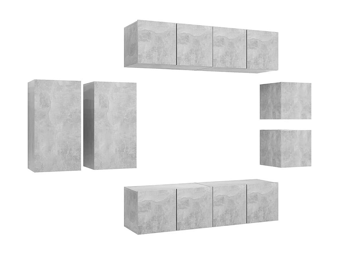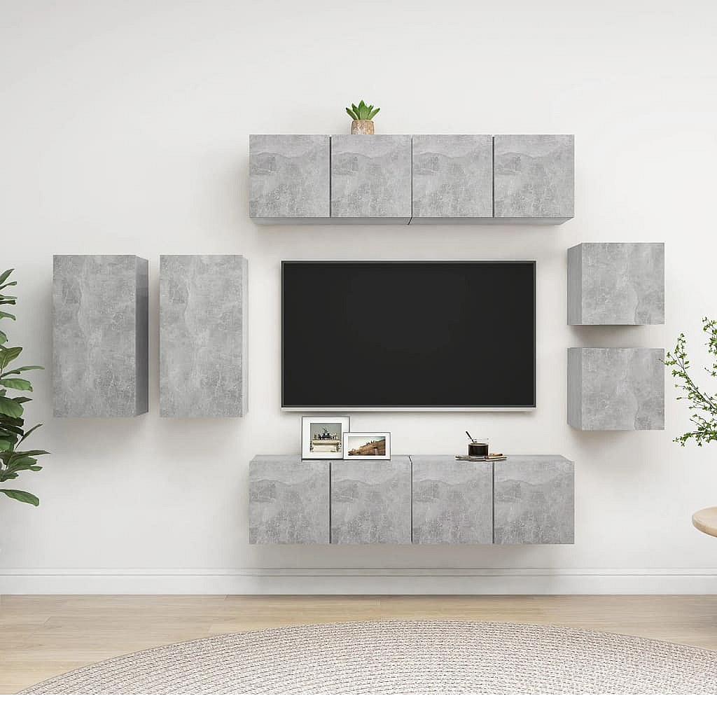 Rebecca Ensemble de meuble TV 8 pcs Gris béton Bois d'ingénierie