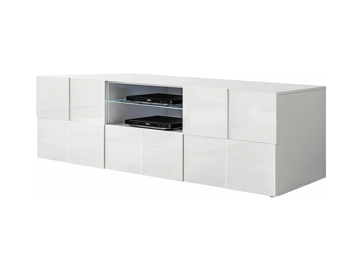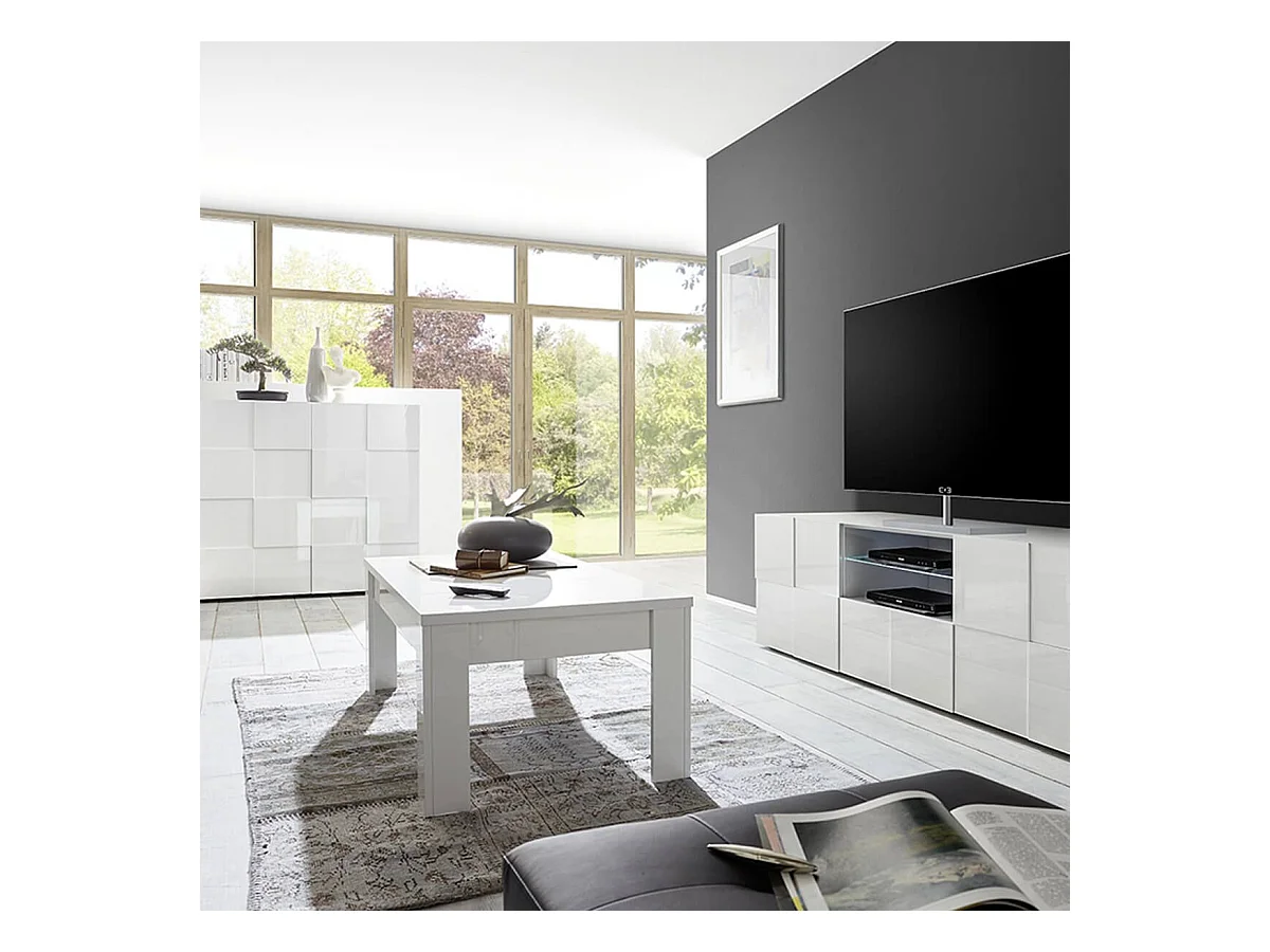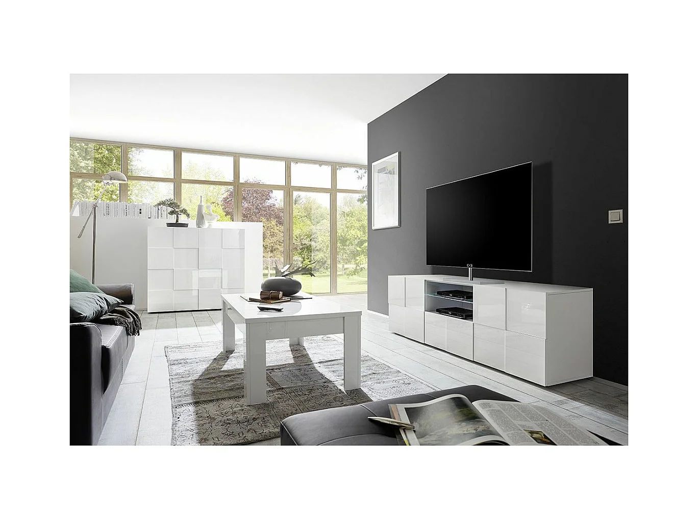 REBECCA - Ensemble Salon complet Meuble TV 181 cm Blanc Laqué Weiss Relief Damiers