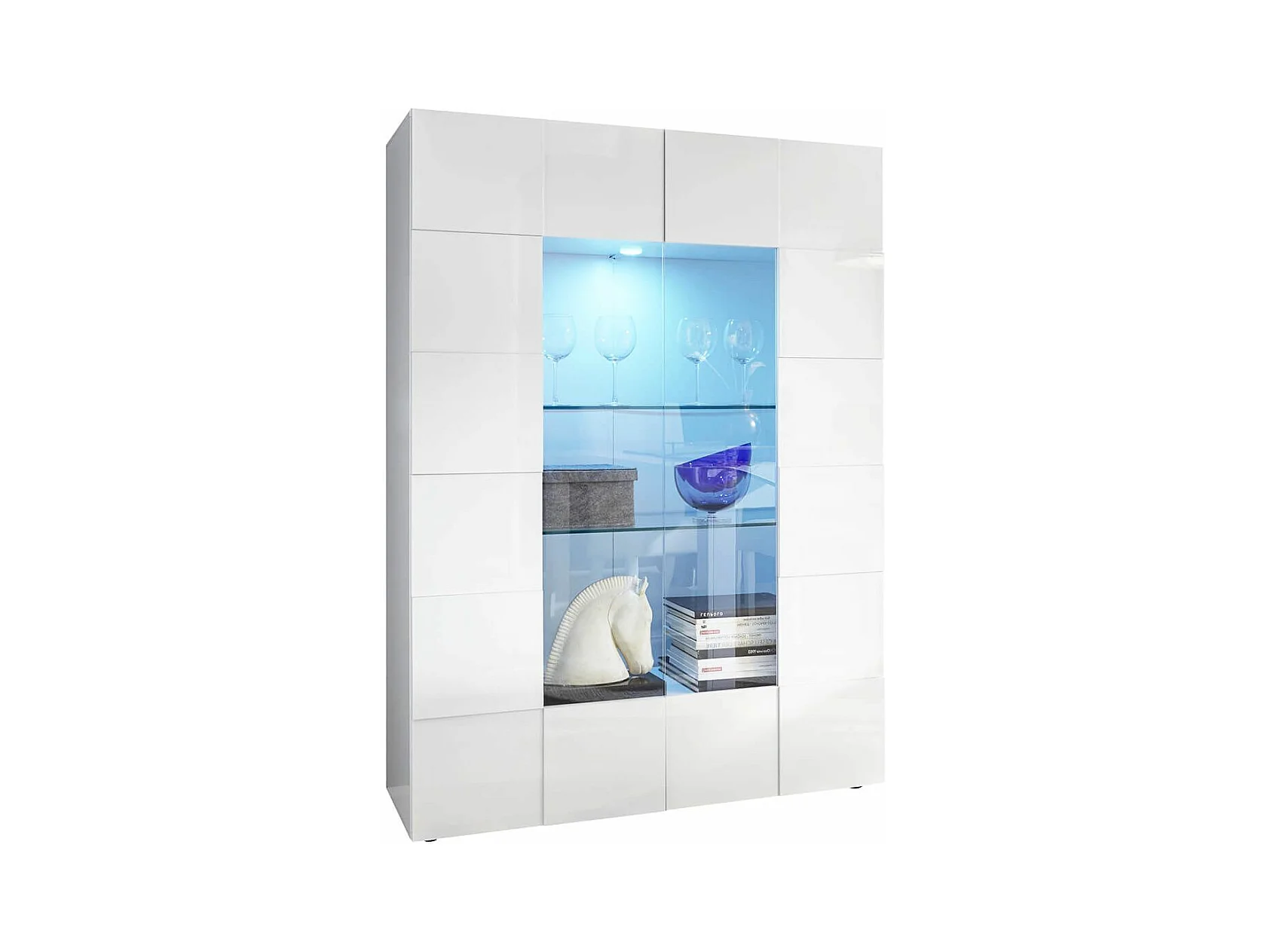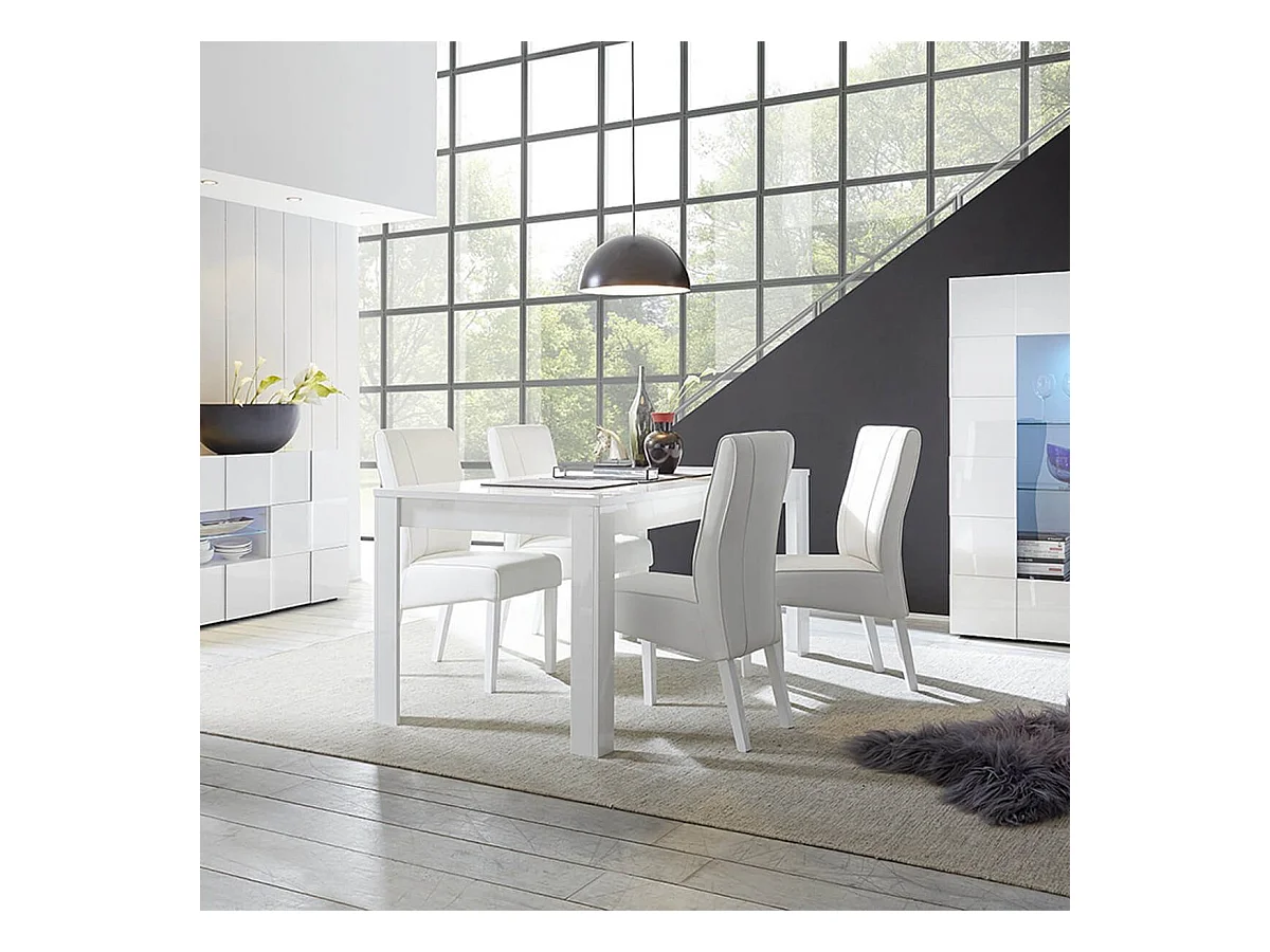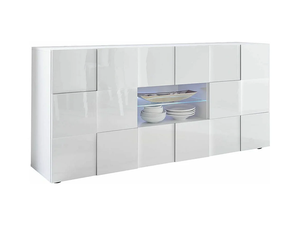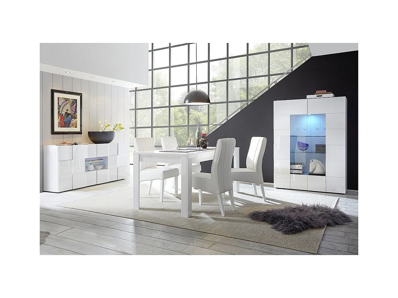 REBECCA - Ensemble Séjour Buffet 2 Portes 2 Tiroirs Blanc Laqué Weiss Relief Damiers