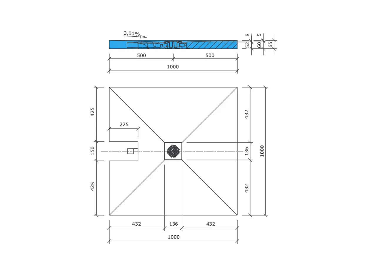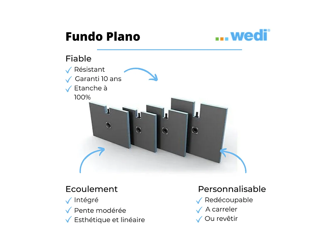 Receveur à carreler 100 x 100 cm WEDI Fundo Plano, bonde intégrée + kit d'étanchéité