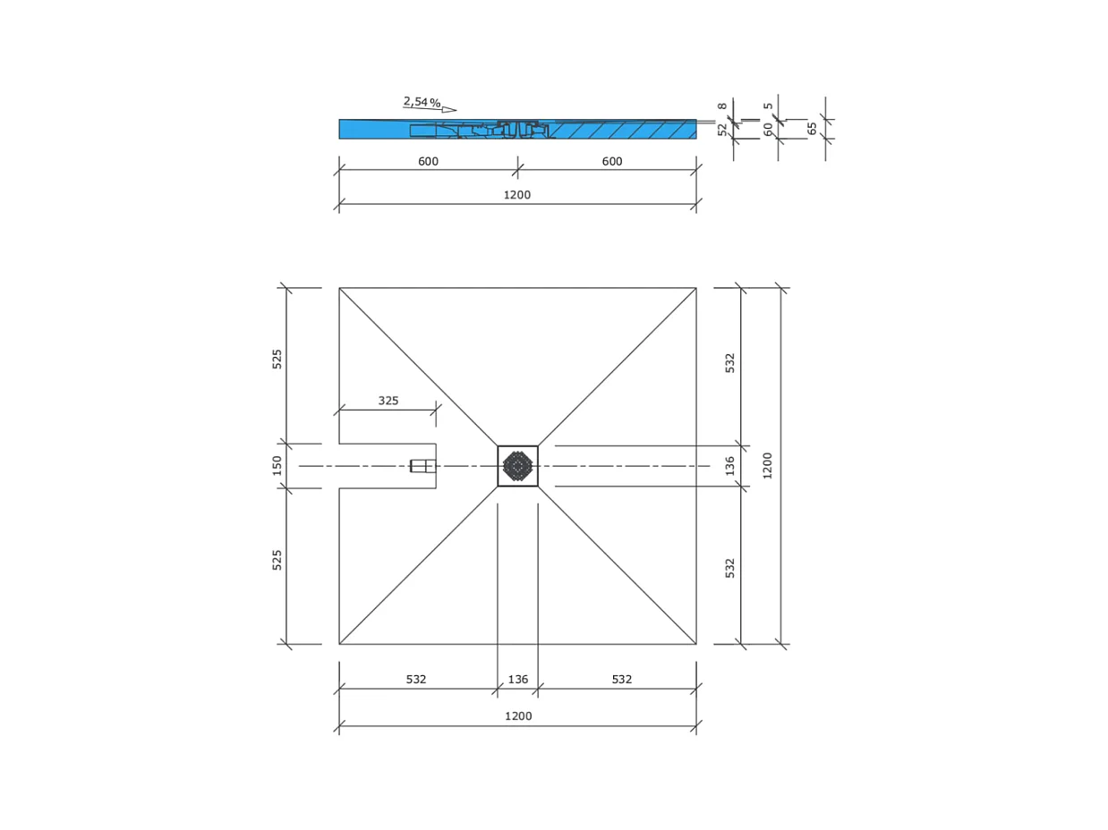 Receveur à carreler 120 X 120 WEDI Fundo Plano carré + bonde intégrée + Wedi 320