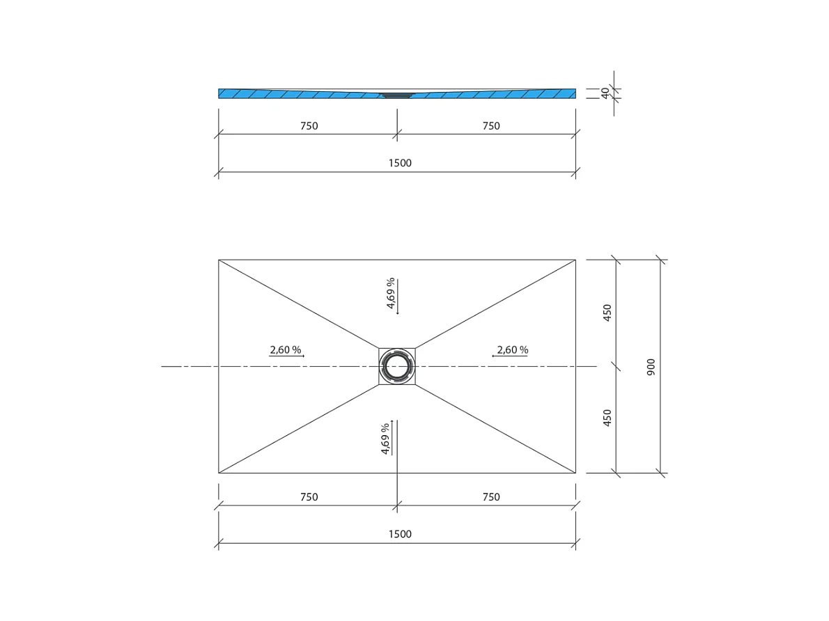 Receveur de douche à carreler 150 x 90 WEDI Fundo Primo rectangle écoulement centré