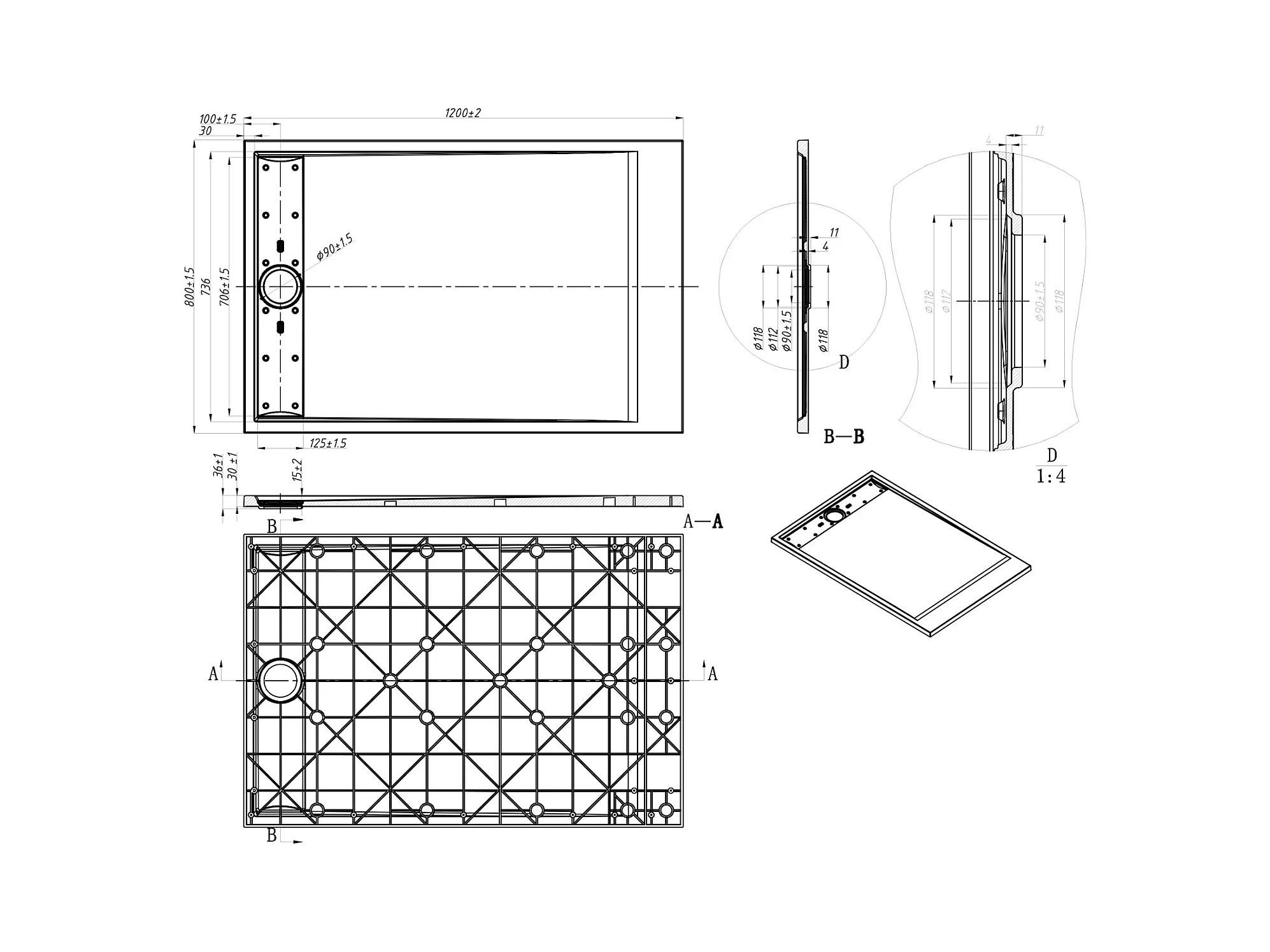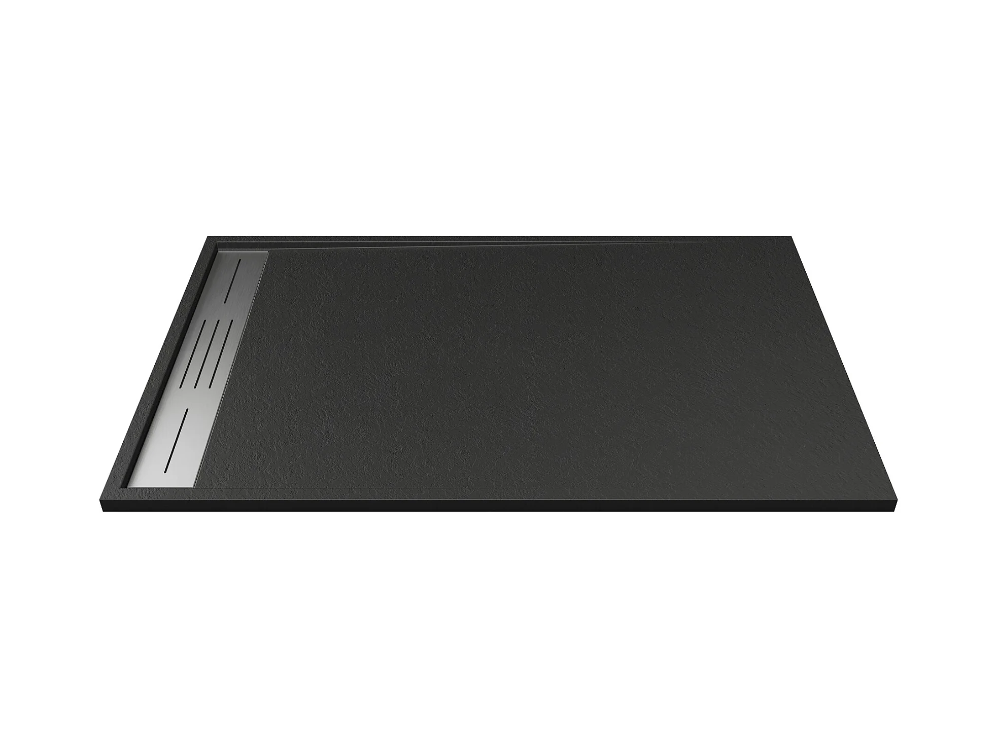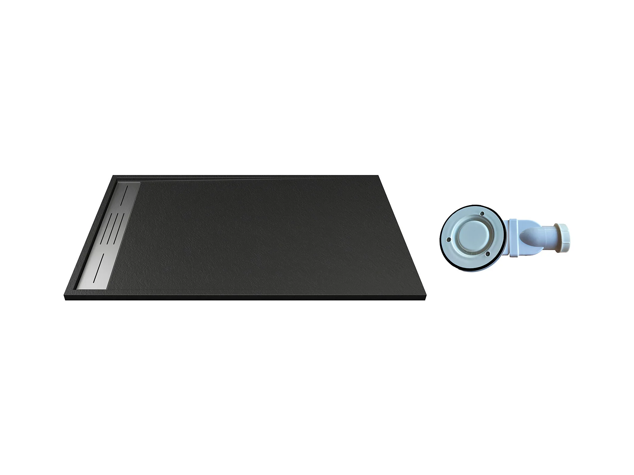 Receveur de douche extra plat à poser ou à encastrer recoupable en résine SMC avec siphon - Noir - 120 x 80 cm - LYROSA