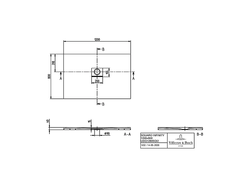 Receveur antidérapant 120 x 80 VILLEROY ET BOCH Squaro Infinity quaryl rectangle gris anthracite