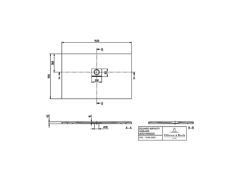 Receveur antidérapant 140 x 90 VILLEROY ET BOCH Squaro Infinity quaryl rectangle gris anthracite