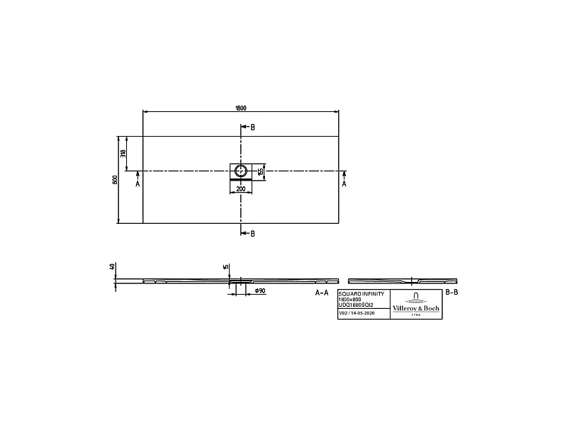 Receveur antidérapant 180 x 80 VILLEROY ET BOCH Squaro Infinity quaryl rectangle gris