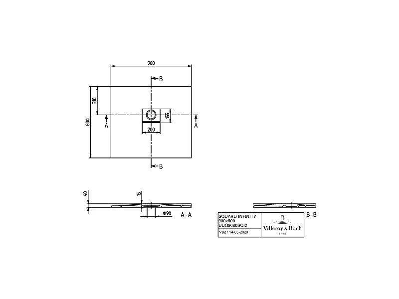 Receveur antidérapant 90 x 80 VILLEROY ET BOCH Squaro Infinity quaryl rectangle gris