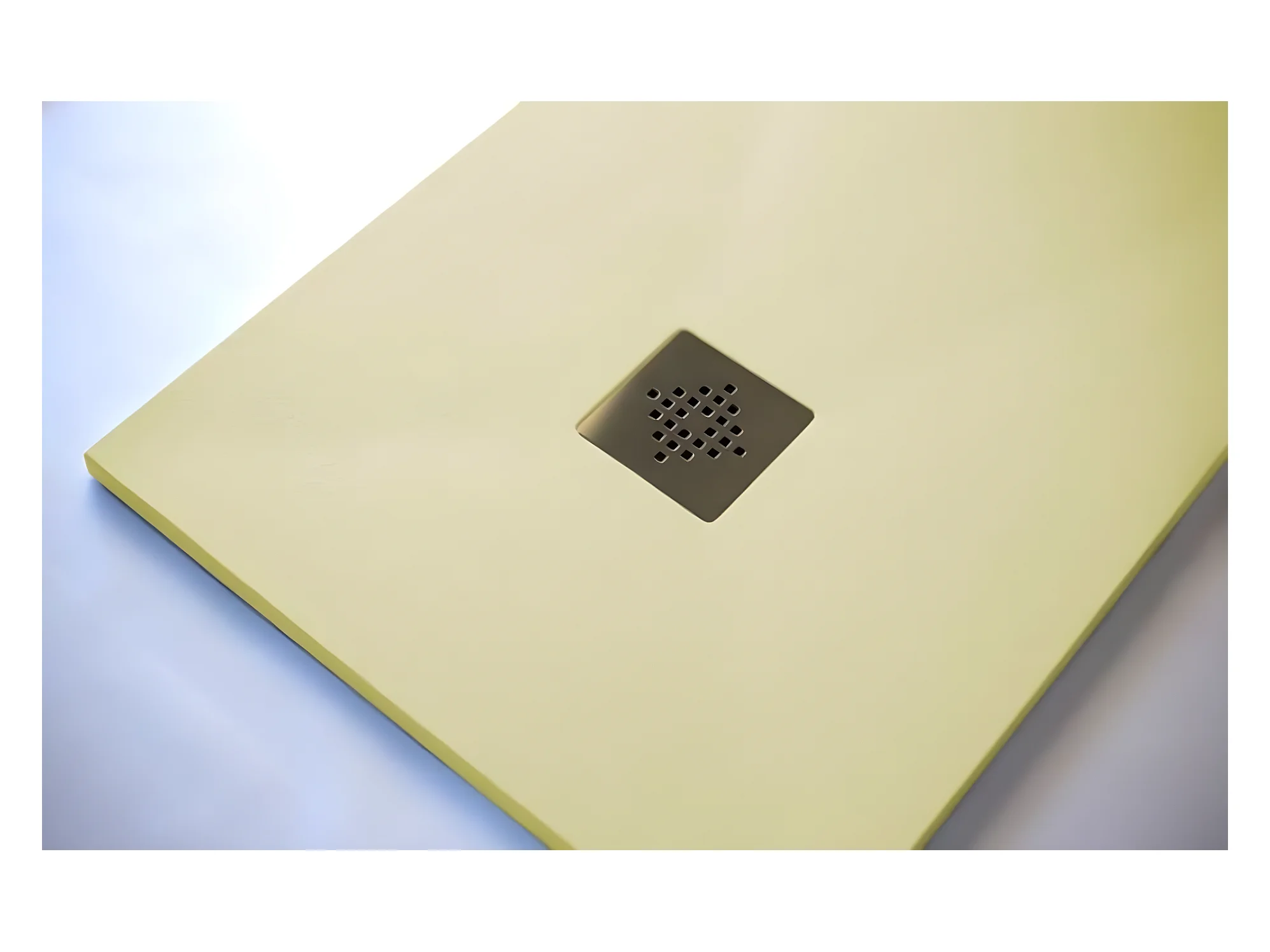 Receveur de douche 100 x 170 cm extra plat PURE en résine surface ardoisée beige Grille inox