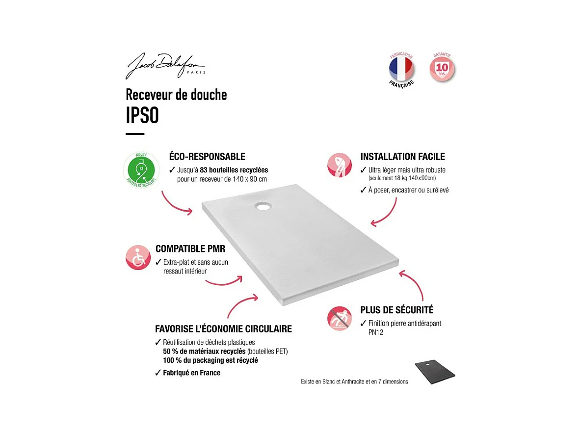 Receveur de douche 100 x 80 JACOB DELAFON Ipso rectangle gris anthracite