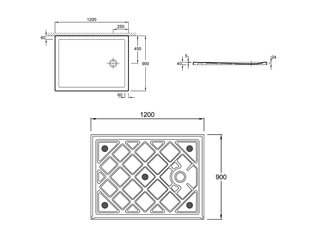 Receveur de douche 120 x 90 JACOB DELAFON Gaspard bonde à droite + bonde + kit de réhausse
