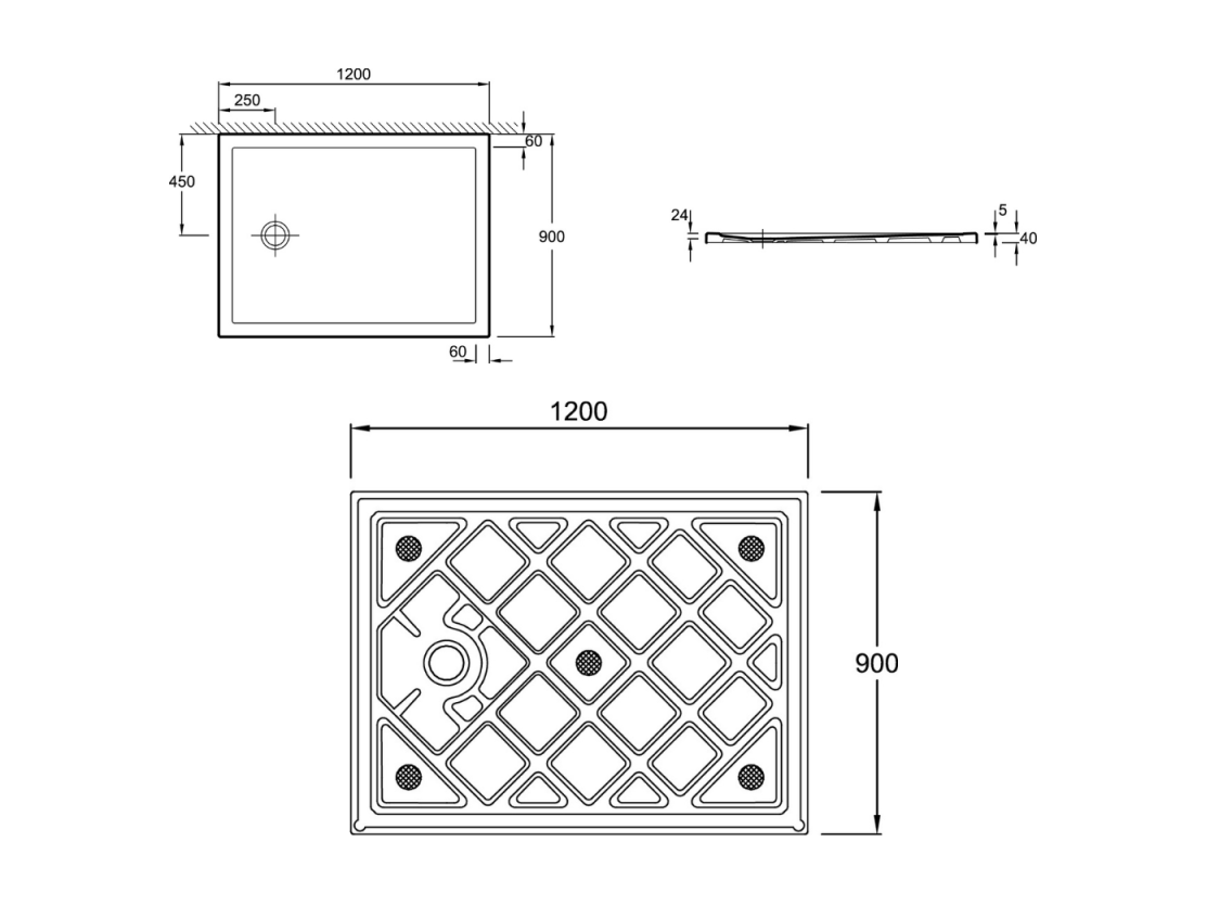 Receveur de douche 120 x 90 JACOB DELAFON Gaspard bonde à gauche + bonde Gaspard