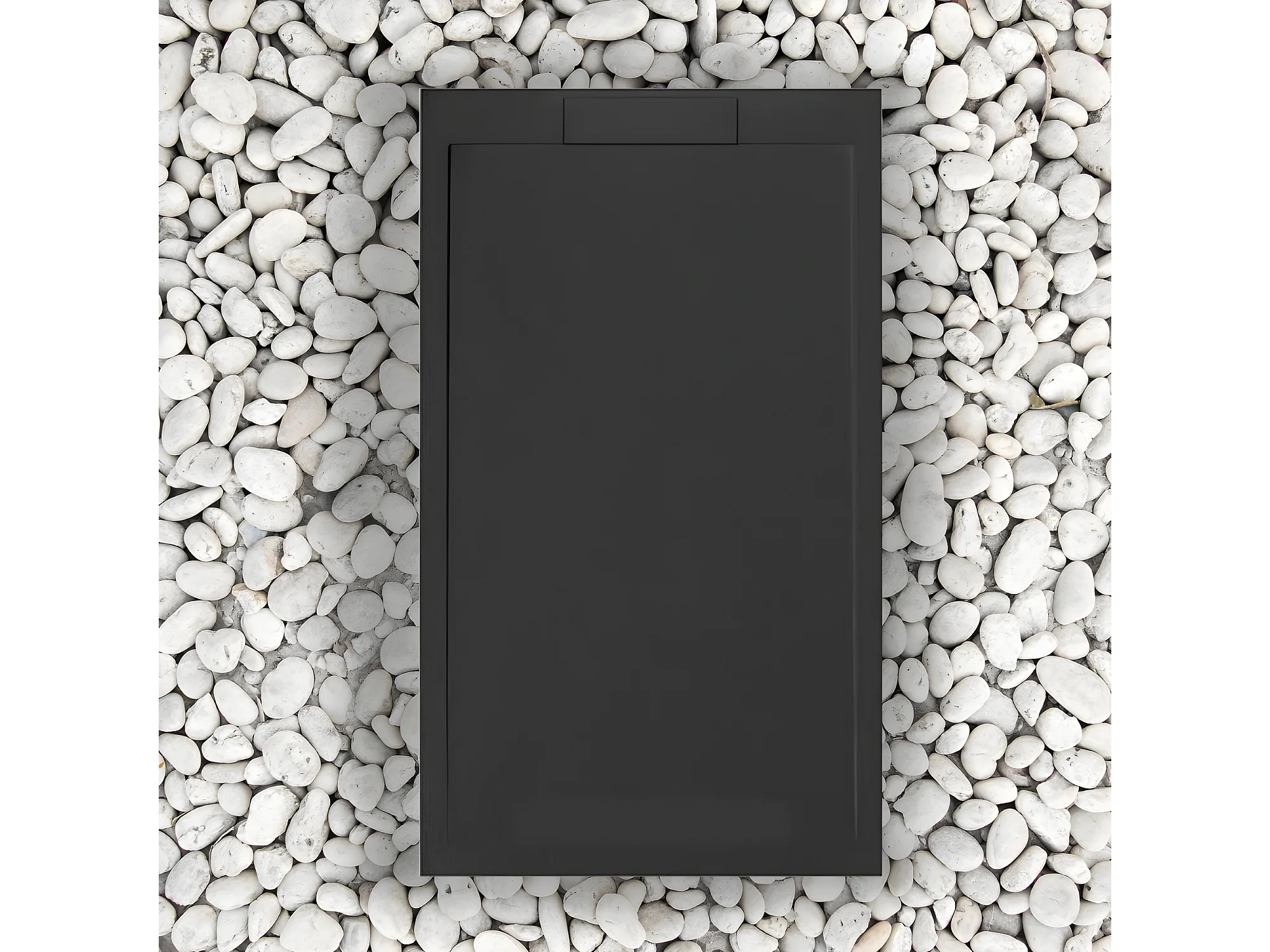 RECEVEUR DE DOUCHE 120X90 cm Ligne Nero Vulcano SLIM en résine et poudre de marbre avec grille latérale en résine de marbre
