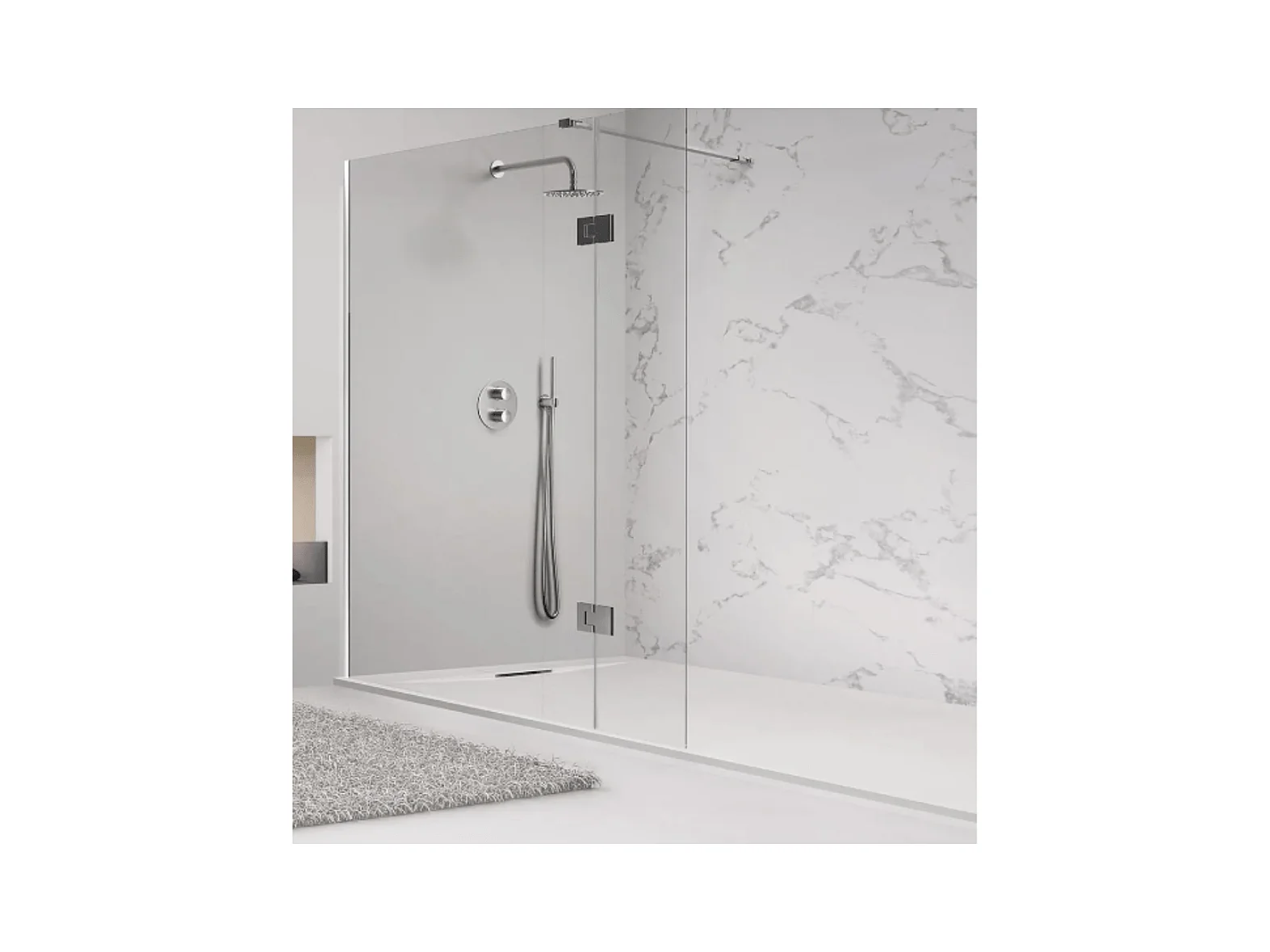 Receveur de douche 135X90 cm Blanc Vulcano Line PLUS en résine et poudre de marbre avec grille latérale en résine de marbre