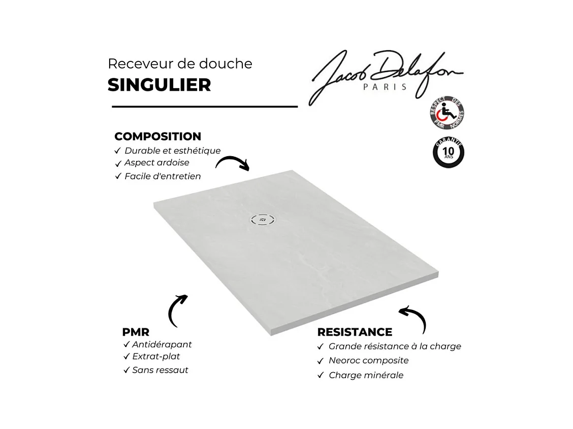 Receveur de douche 140 x 90 JACOB DELAFON Singulier neoroc rectangle blanc + bonde