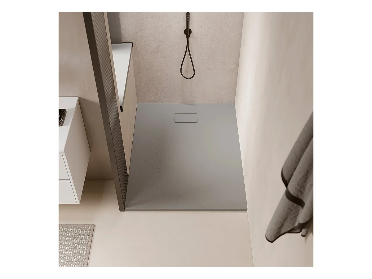 Receveur de douche 80 x 140 cm extra plat PIATTO en SoliCast® surface ardoisée gris