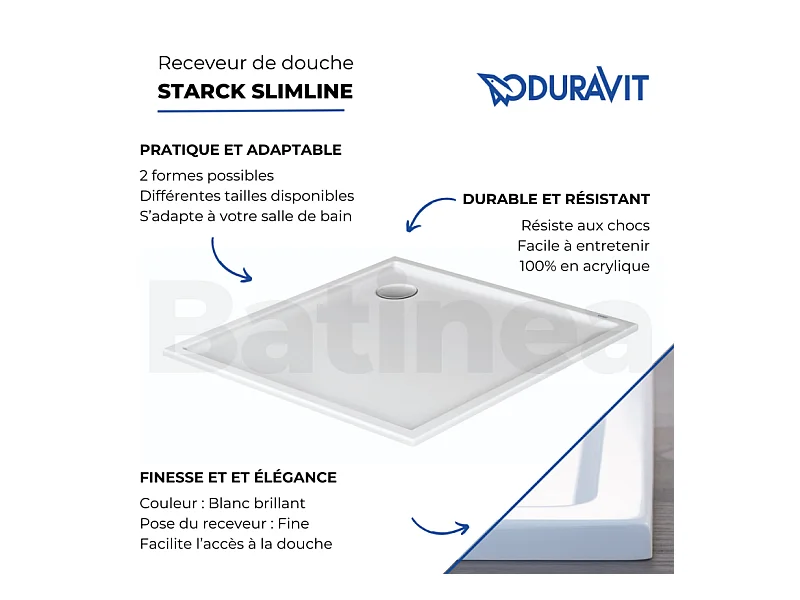 Receveur de douche 80 x 80 DURAVIT Starck Slimline
