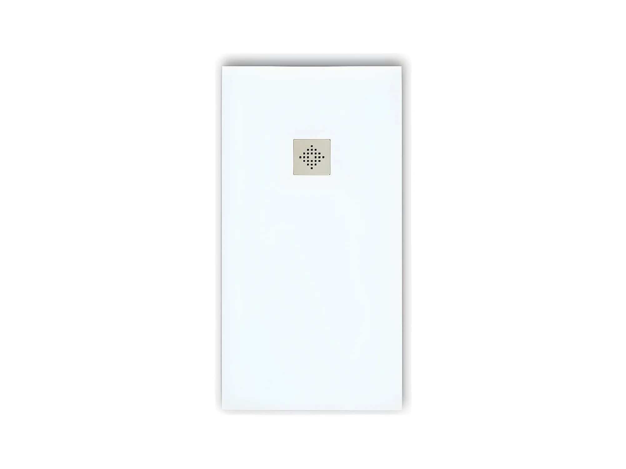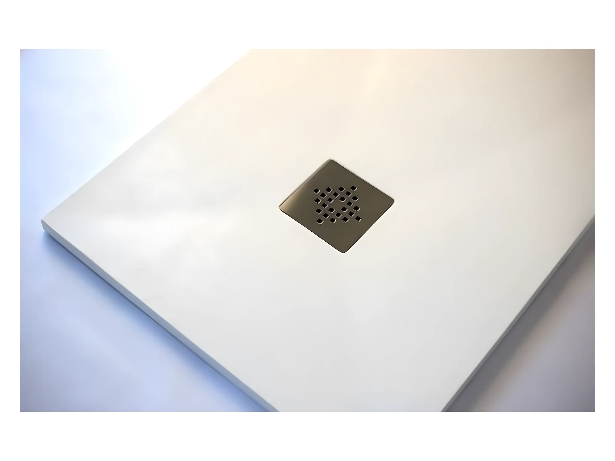 Receveur de douche 80 x 90 cm extra plat PURE en résine surface ardoisée blanc Grille inox