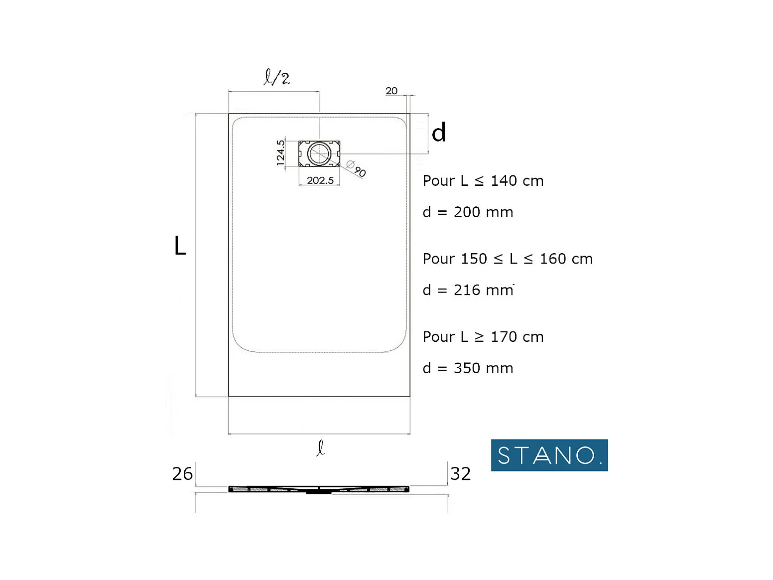 Receveur de douche 90 x 180 cm extra plat PIATTO en SoliCast® surface ardoisée gris