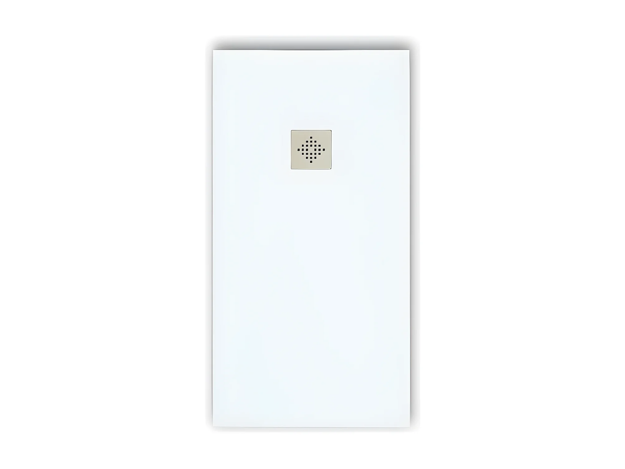 Receveur de douche 90 x 180 cm extra plat PURE en résine surface ardoisée blanc Grille inox