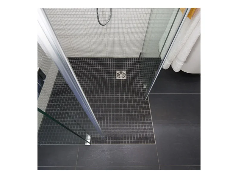 Receveur de douche à carreler 100 x 100 WEDI Fundo Primo carré écoulement excentré + bonde verticale
