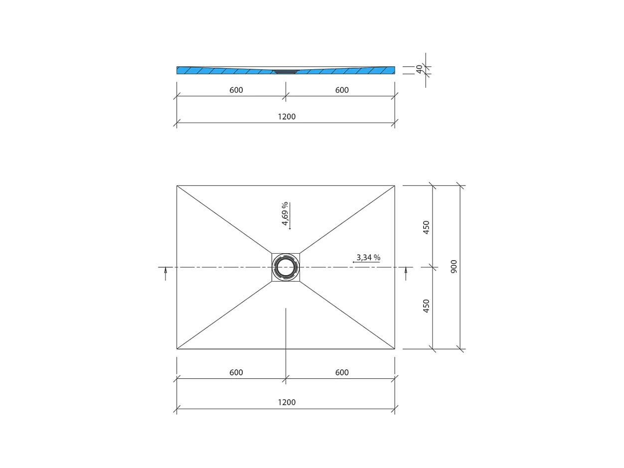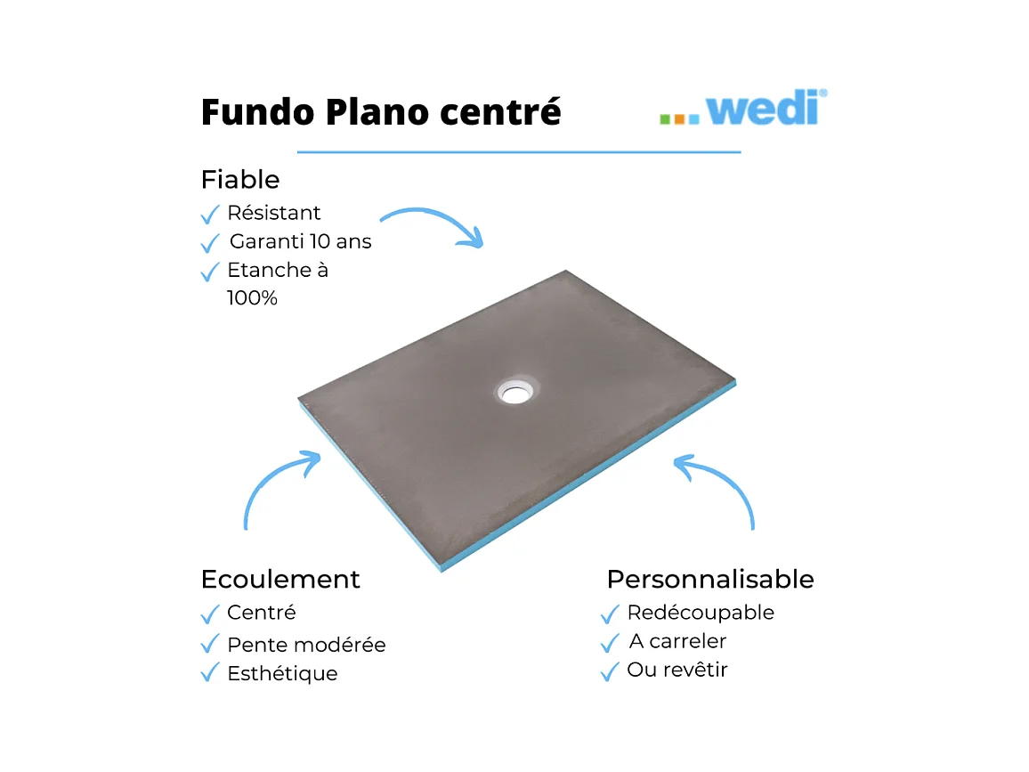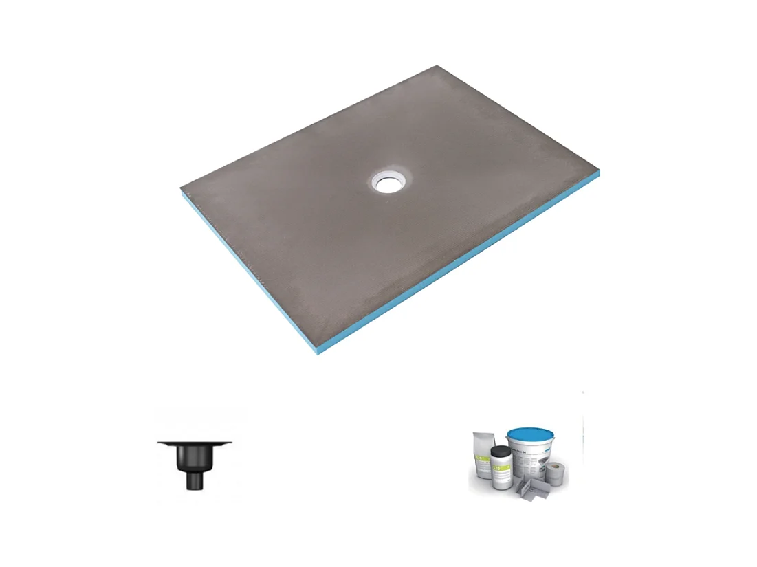Receveur de douche à carreler 120 x 90 WEDI Fundo Primo rectangle écoulement centré + bonde verticale + kit d'étanchéité