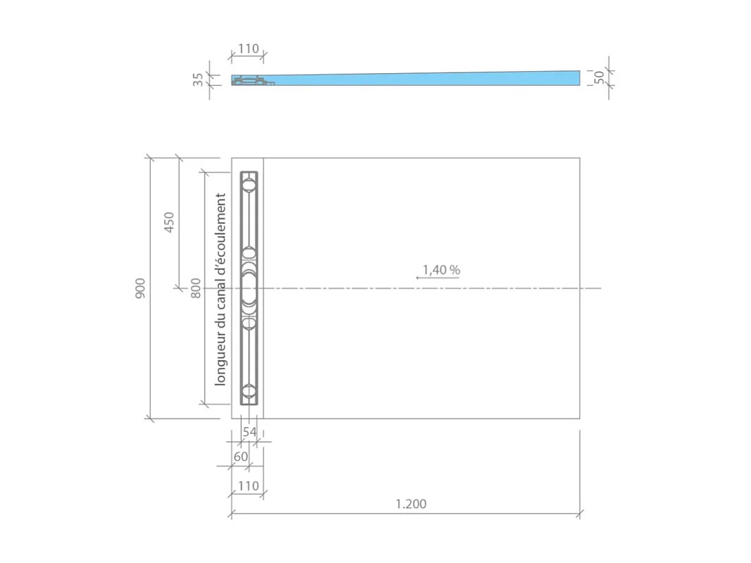 Receveur à carreler 120 x 90 WEDI Fundo riolito neo + revêtement Top marble white + colle + ecoulement horizontal + kit étanche