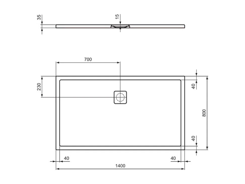 Receveur de douche antidérapant IDEAL STANDARD Ultra Flat Evo recoupable avec bonde longueur 140 x 80